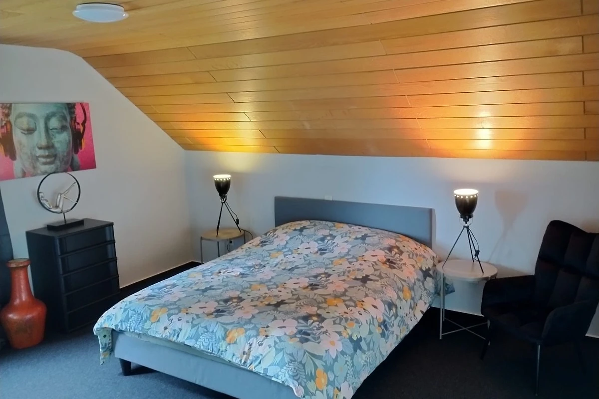 Schöne, unabhängige Wohnung in einem Einfamilienhaus. Eine Mischung aus deutscher Eifeltradition und Rotterdam/Brabanter Gastfreundschaft, individuell eingerichtet und komplett ausgestattet. Sie verfügen über Wohnzimmer, Esszimmer, Küche, Flur, Bad und zwei Schlafzimmer mit Platz für vier Erwachsene. Schöne Aussicht auf der einen Seite Richtung Wiesbaum und auf der anderen Seite Richtung Lissendorf. Parkmöglichkeiten für Ihr Auto oder Motorrad. Nutzung eines Teils des grosszügigen Gartens und des Blockhauses.