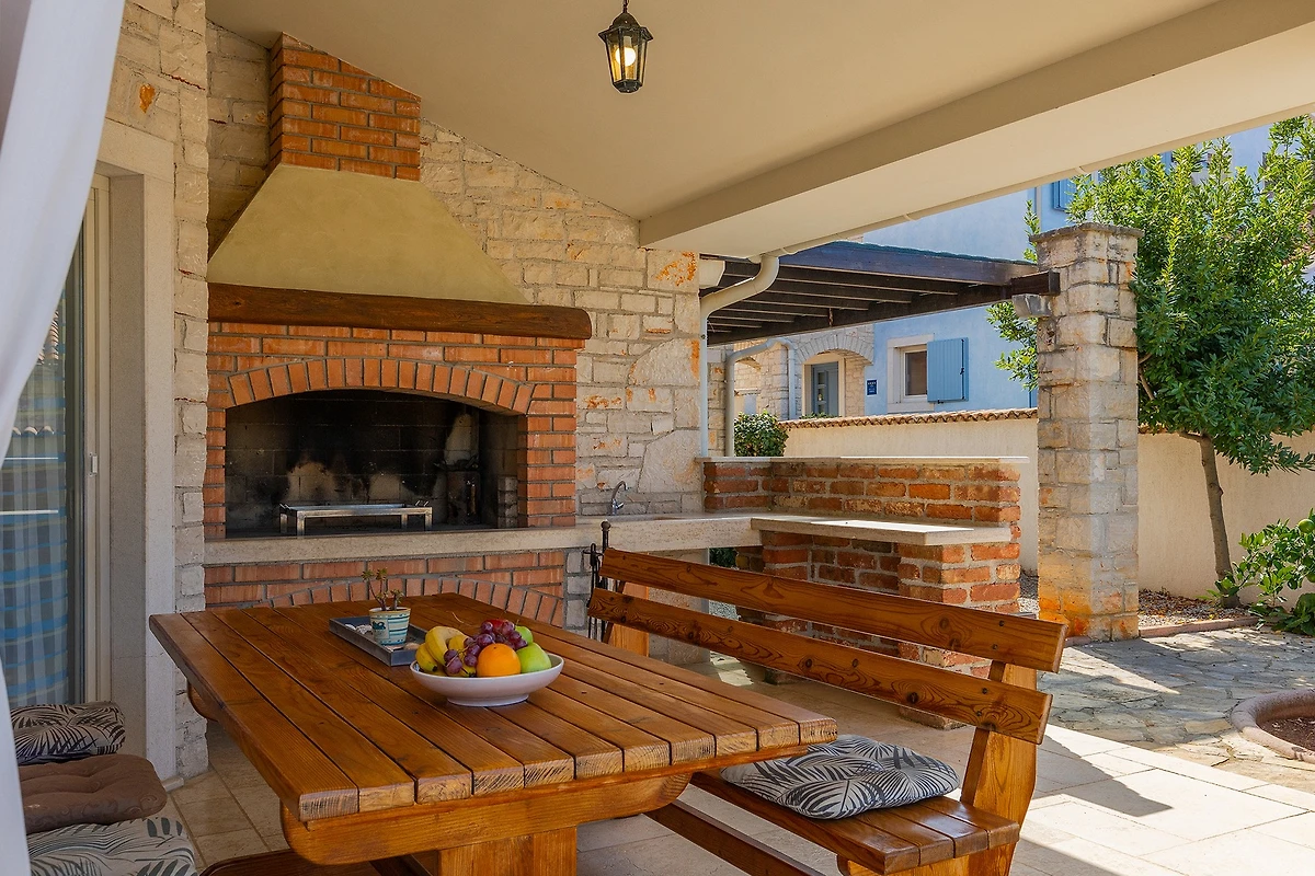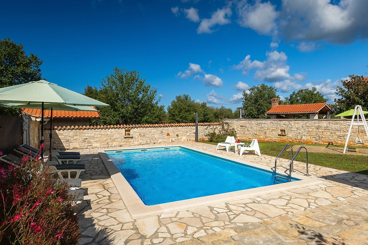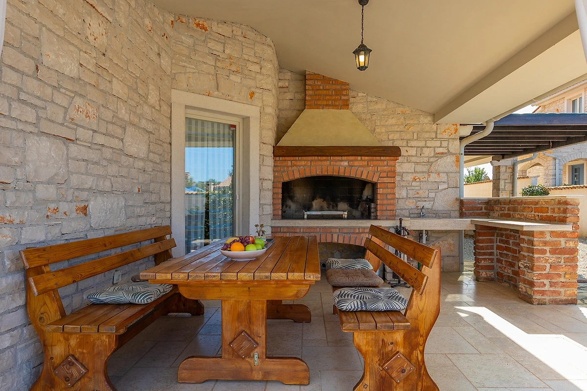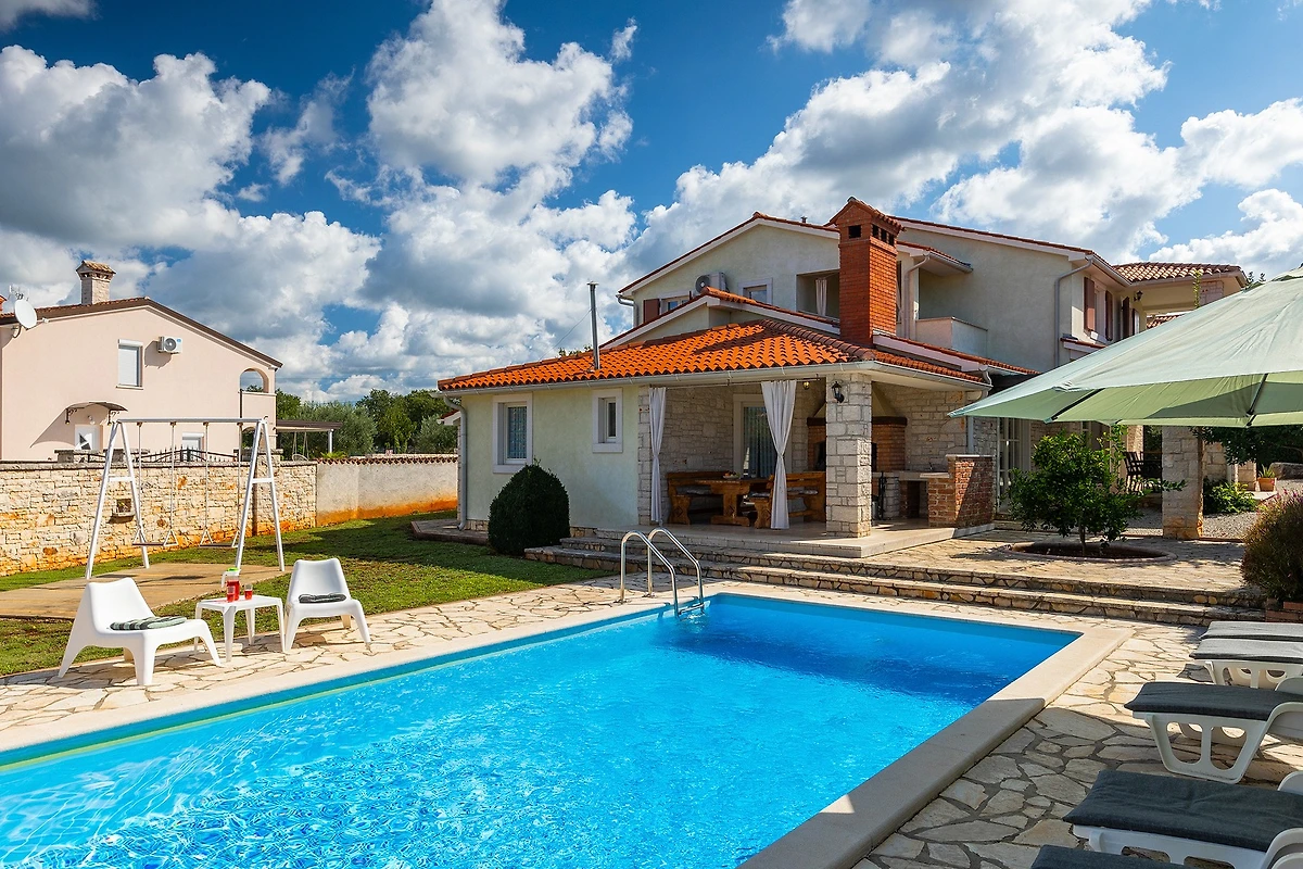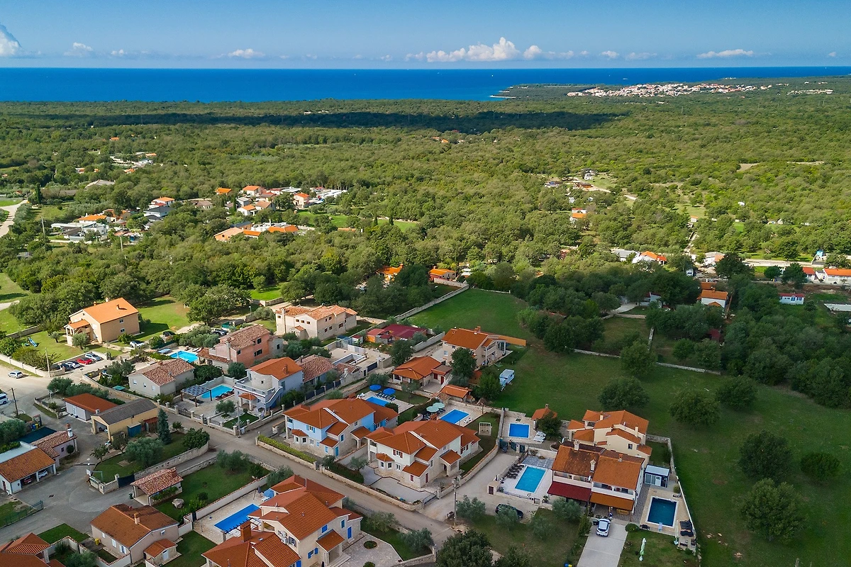 Gelegen nur 5 km vom sandigen Strand von Barbariga und 8,6 km von der charmanten Stadt Vodnjan entfernt, bietet diese Villa eine hervorragende Basis zur Erkundung der Region. Der Flughafen Pula ist etwa 23 km entfernt, was die Reise bequem macht.