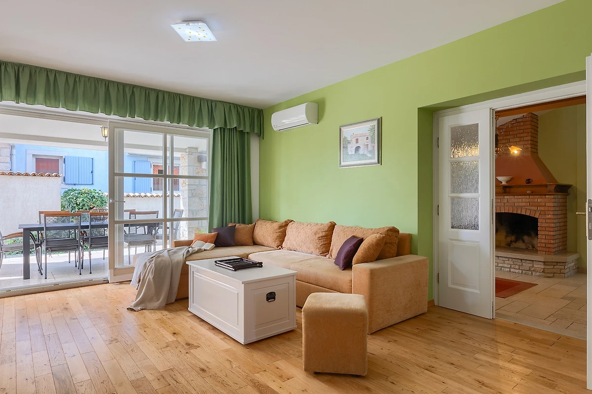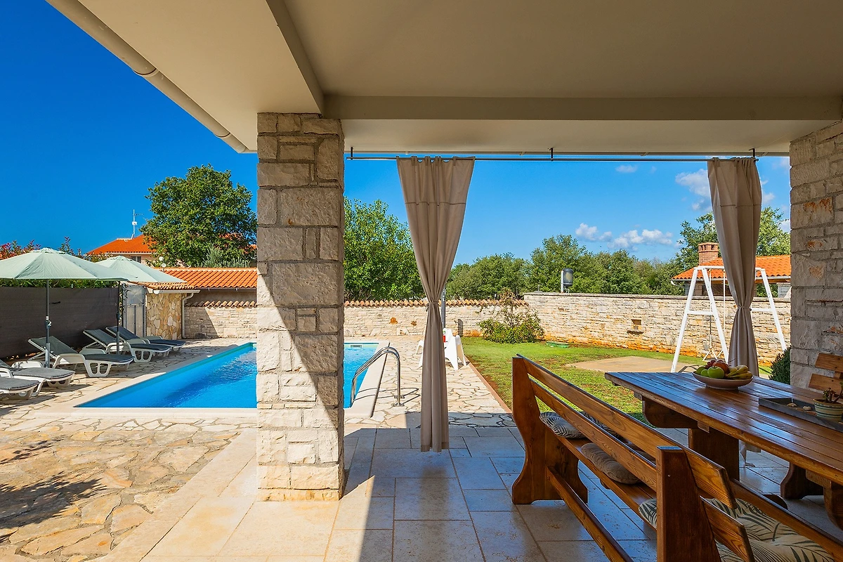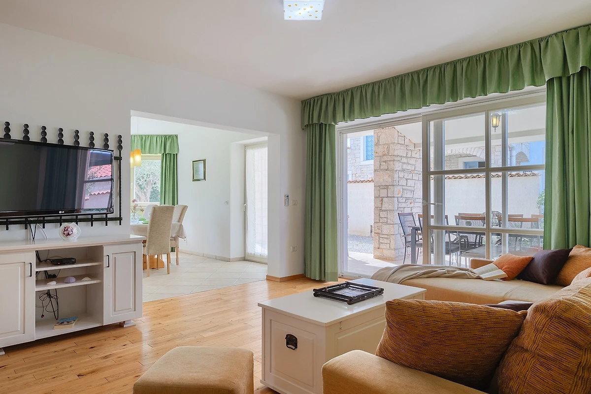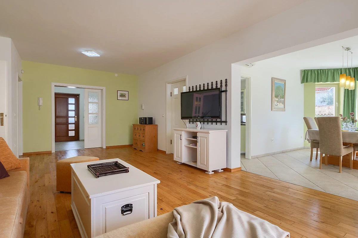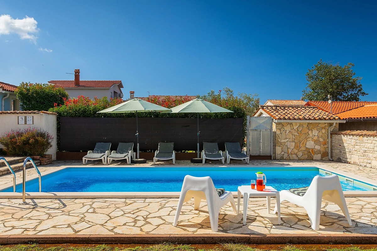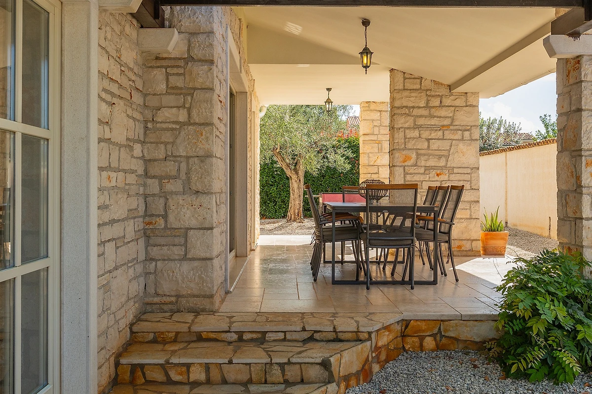 Gelegen nur 5 km vom sandigen Strand von Barbariga und 8,6 km von der charmanten Stadt Vodnjan entfernt, bietet diese Villa eine hervorragende Basis zur Erkundung der Region. Der Flughafen Pula ist etwa 23 km entfernt, was die Reise bequem macht.