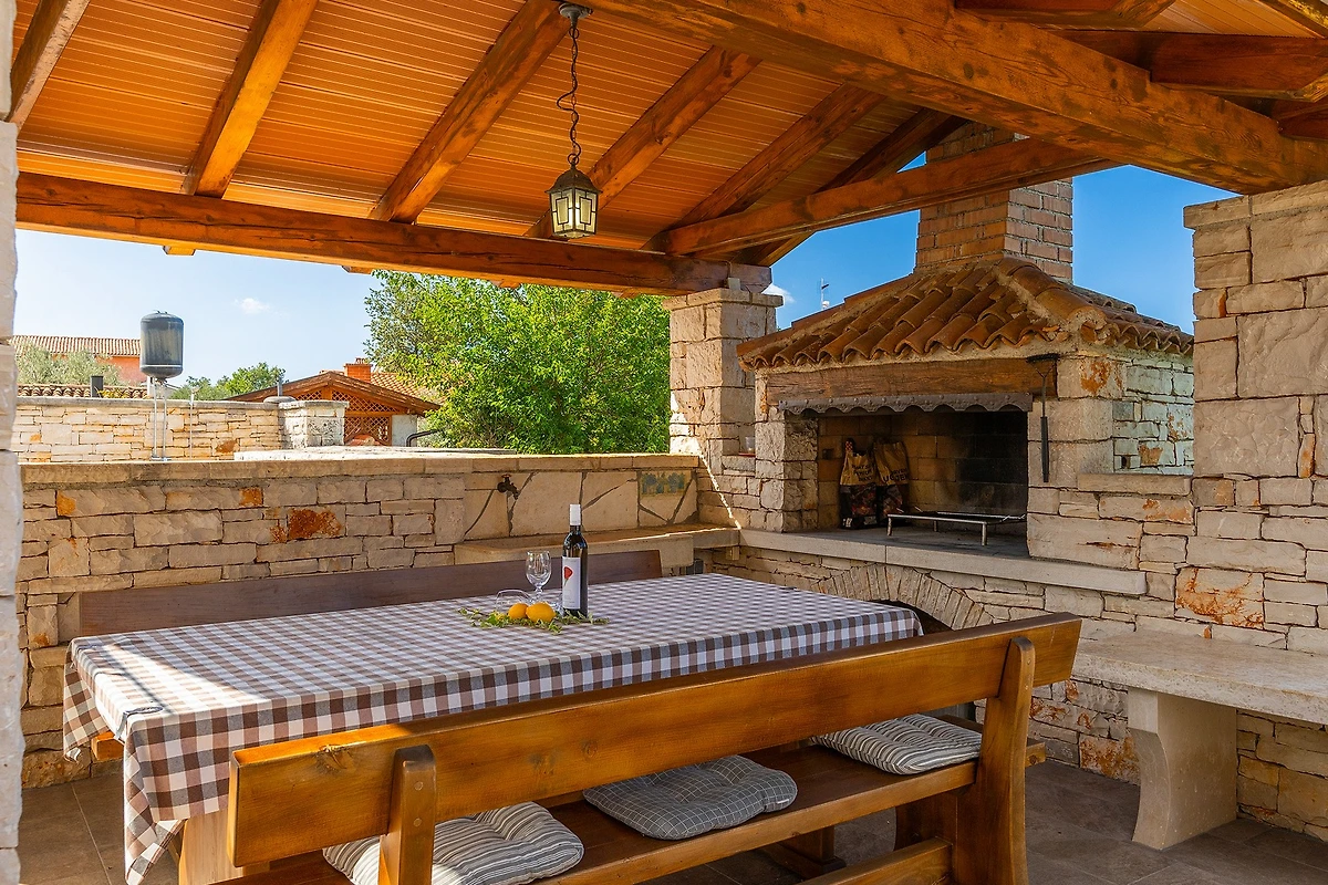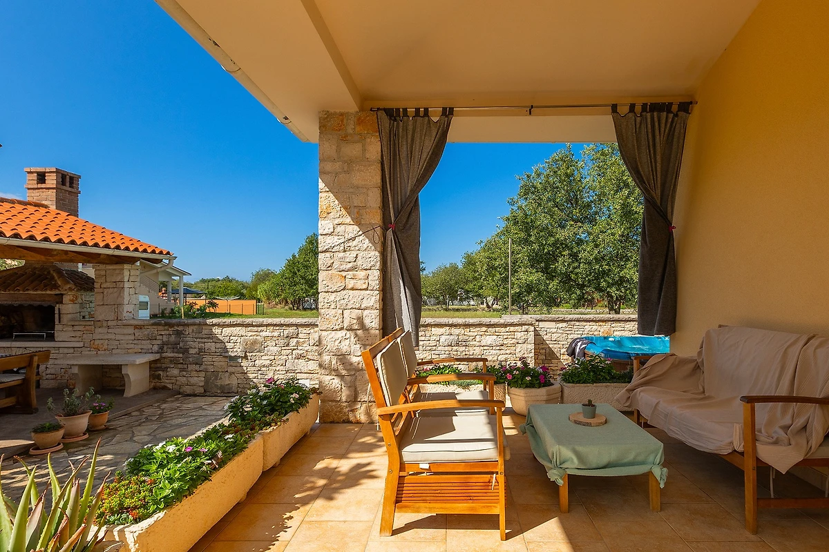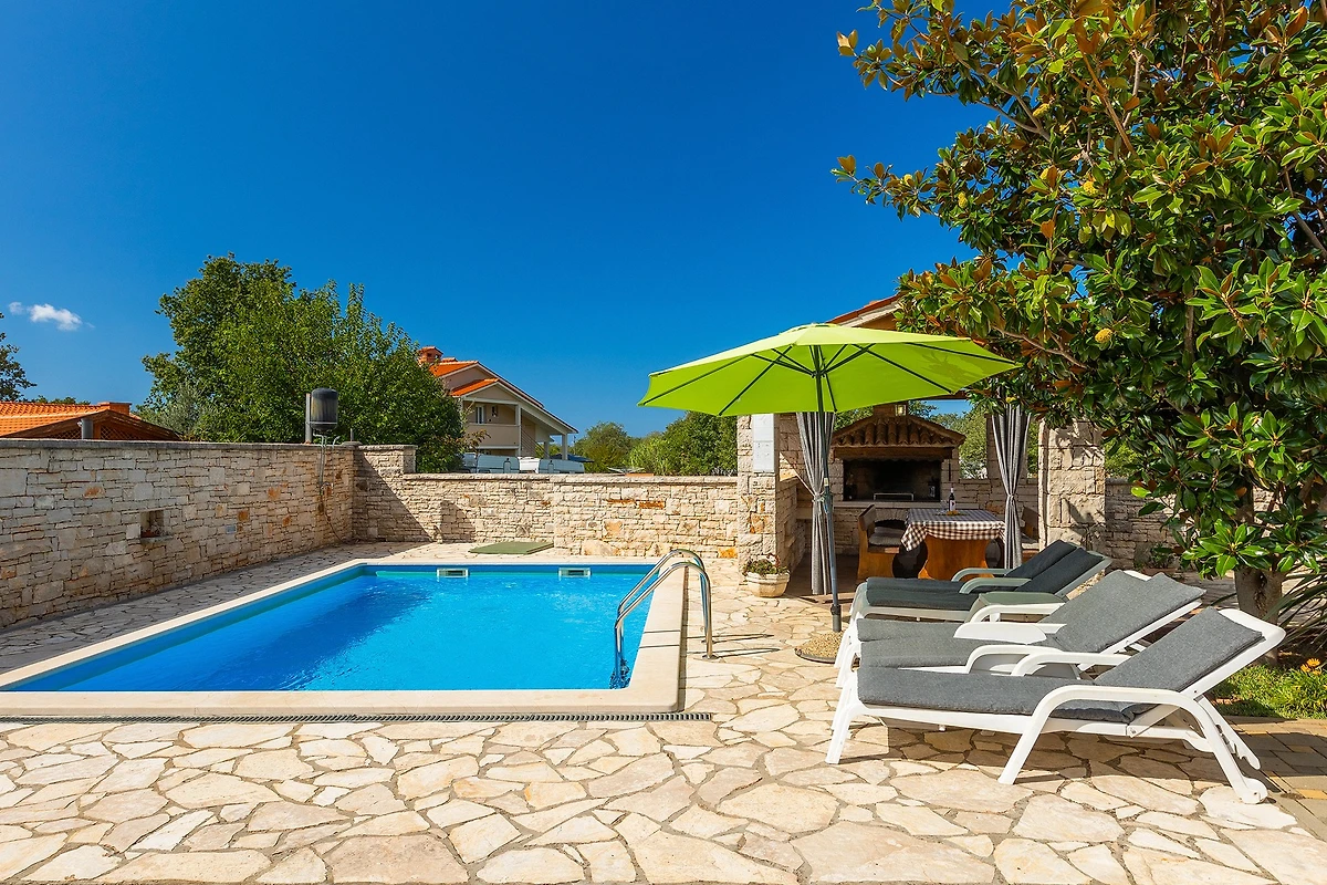 Villa Ulika bietet einen entzückenden Rückzugsort für Familien und Paare, die eine ruhige Auszeit in der malerischen Landschaft in der Nähe von Vodnjan suchen. Diese geräumige 170 Quadratmeter grosse Immobilie bietet komfortable Unterkunft für bis zu 6 Gäste und verfügt über 3 gut ausgestattete Schlafzimmer mit einer Mischung aus Doppelbetten und Einzelbetten.