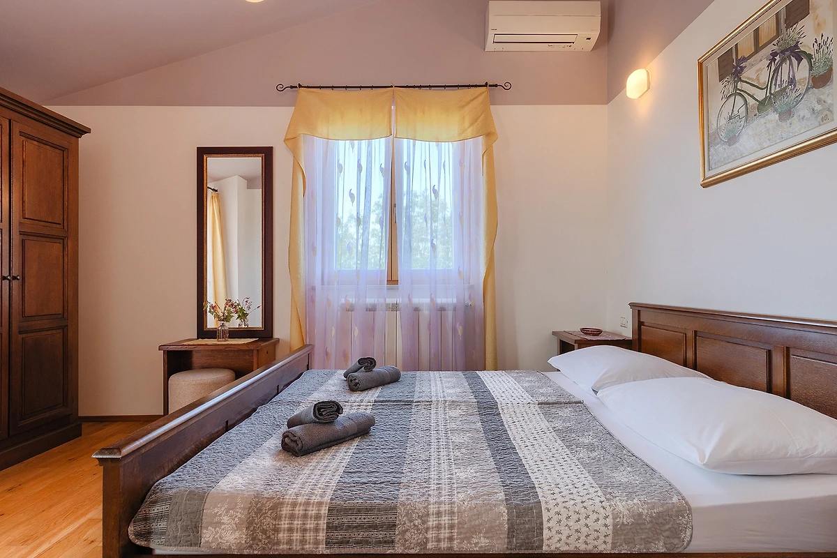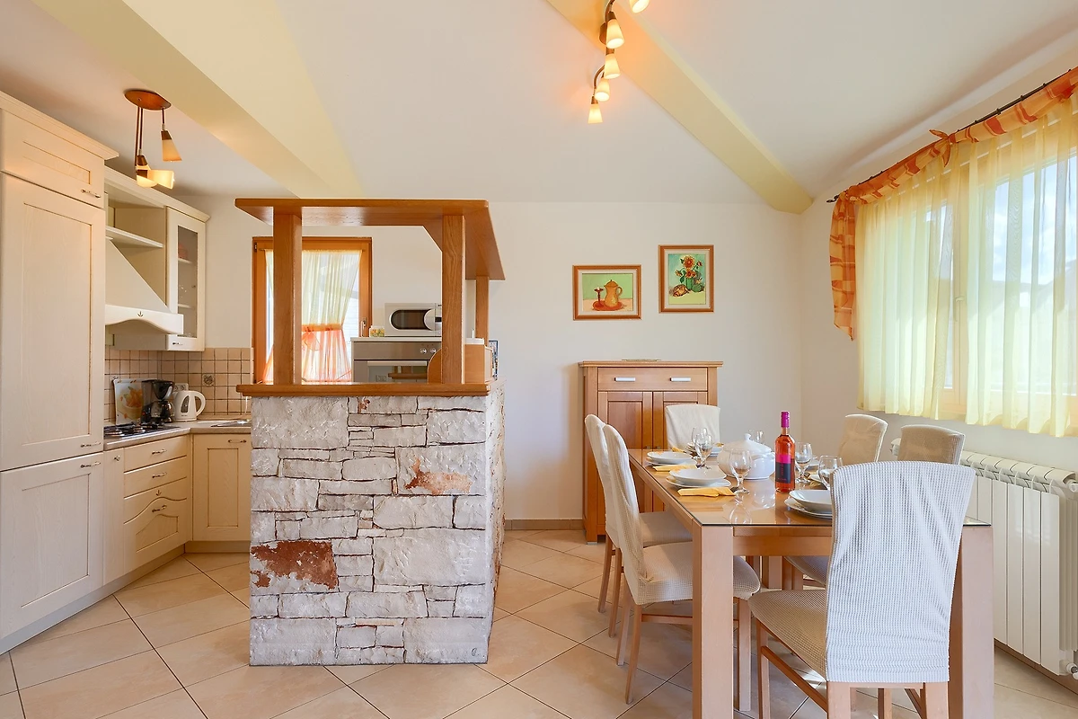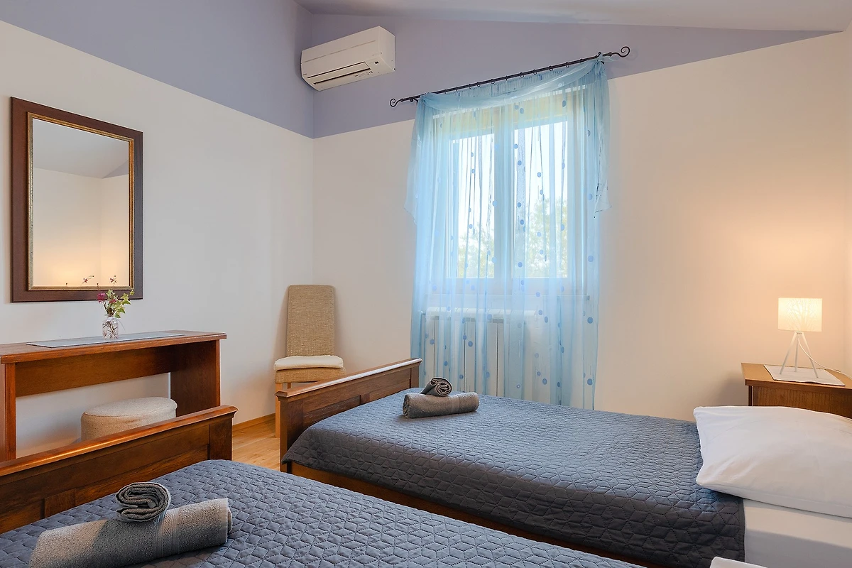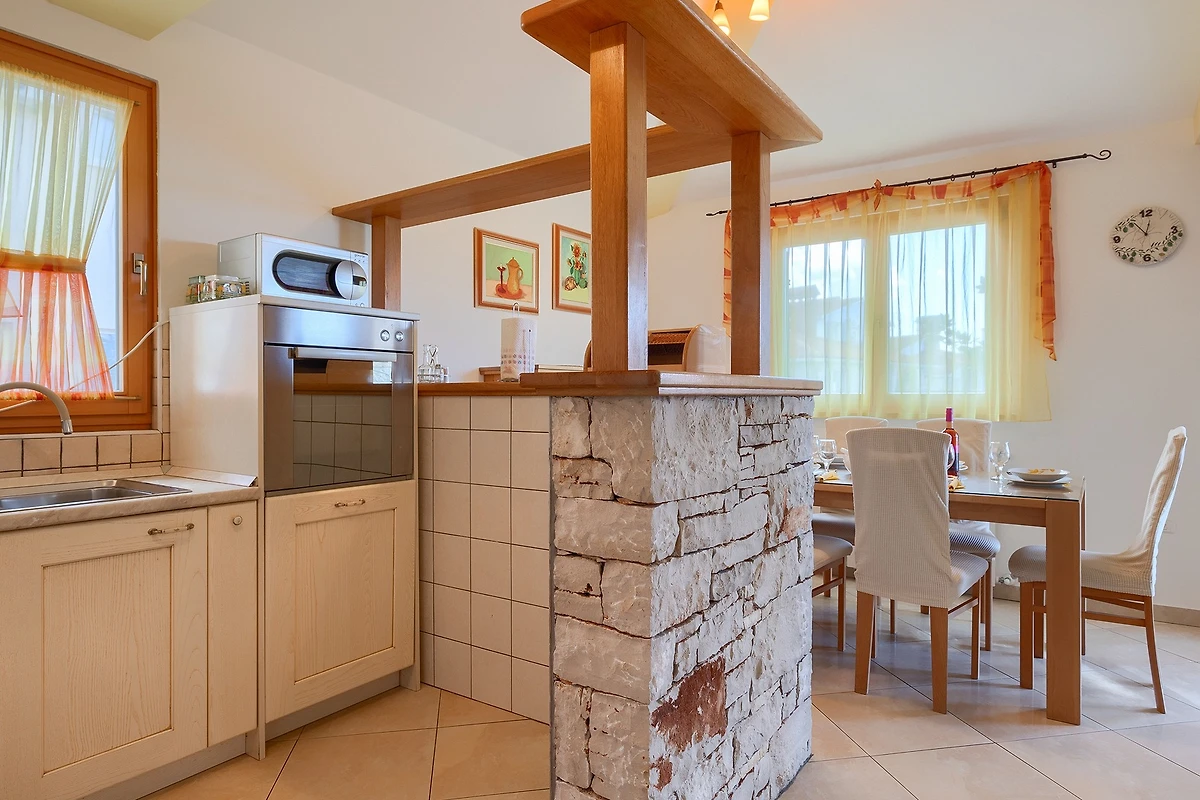 Villa Ulika bietet einen entzückenden Rückzugsort für Familien und Paare, die eine ruhige Auszeit in der malerischen Landschaft in der Nähe von Vodnjan suchen. Diese geräumige 170 Quadratmeter grosse Immobilie bietet komfortable Unterkunft für bis zu 6 Gäste und verfügt über 3 gut ausgestattete Schlafzimmer mit einer Mischung aus Doppelbetten und Einzelbetten.