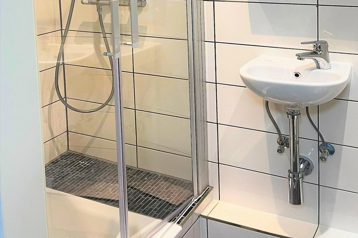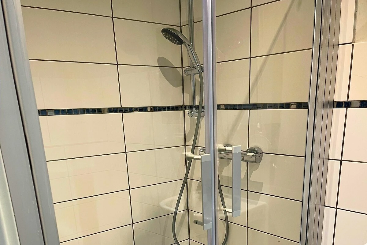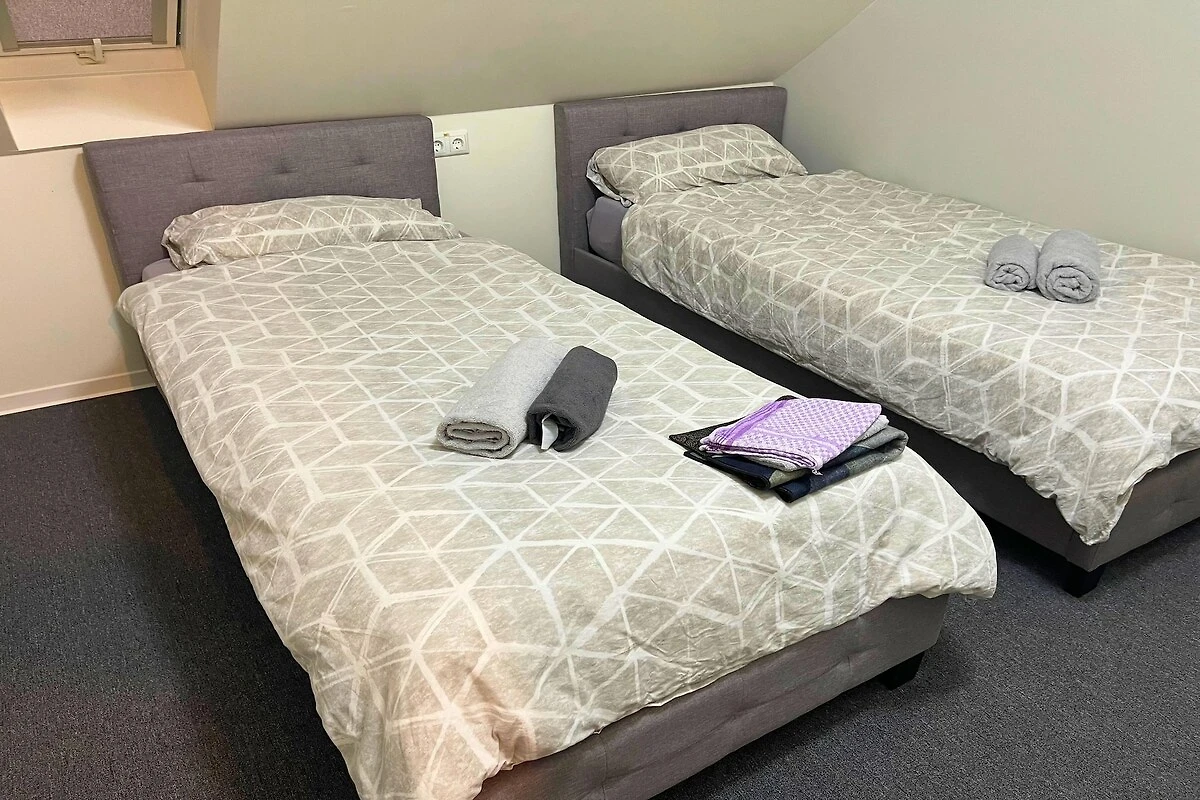 Das Schlafzimmer bietet entweder ein Doppelbett oder zwei Einzelbetten und sorgt so für Flexibilität und Komfort. Ein modernes Badezimmer mit Dusche, WC und Haartrockner rundet das Angebot ab. Gäste profitieren außerdem von praktischen Annehmlichkeiten wie Klimaanlage, Bügelbrett, Wäschetrockner und Zugang zu einer Waschmaschine (gegen Gebühr) – ideal für längere Aufenthalte. Ein Kinderbett ist auf Anfrage erhältlich, und ein privater Parkplatz sorgt für einen sorgenfreien Aufenthalt bei Anreise mit dem Auto.