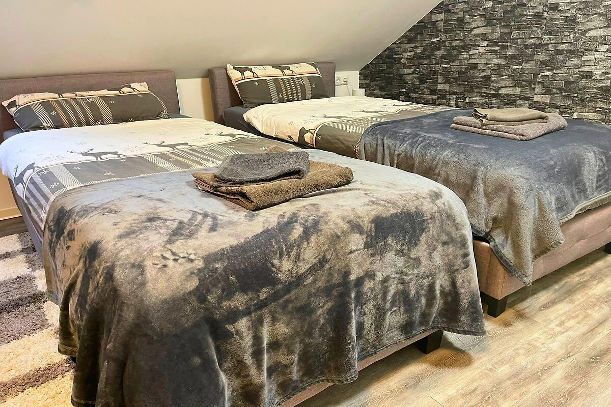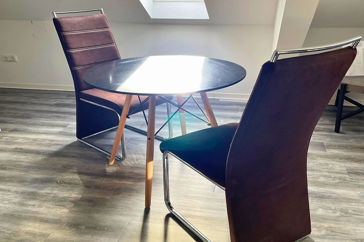 Dieses charmante Apartment eignet sich perfekt für zwei Gäste und bietet einen komfortablen und funktionalen Ausgangspunkt, um die malerische Umgebung von Pellingen zu erkunden. Der offene Wohn- und Schlafbereich mit zwei gemütlichen Einzelbetten, einem Esstisch, einer Sitzecke und einem Fernseher schafft einen einladenden Ort zum Entspannen nach einem erlebnisreichen Tag. Mit warmem Tageslicht und modernen Möbeln ist das Zimmer durchdacht und bietet Komfort und Bequemlichkeit.