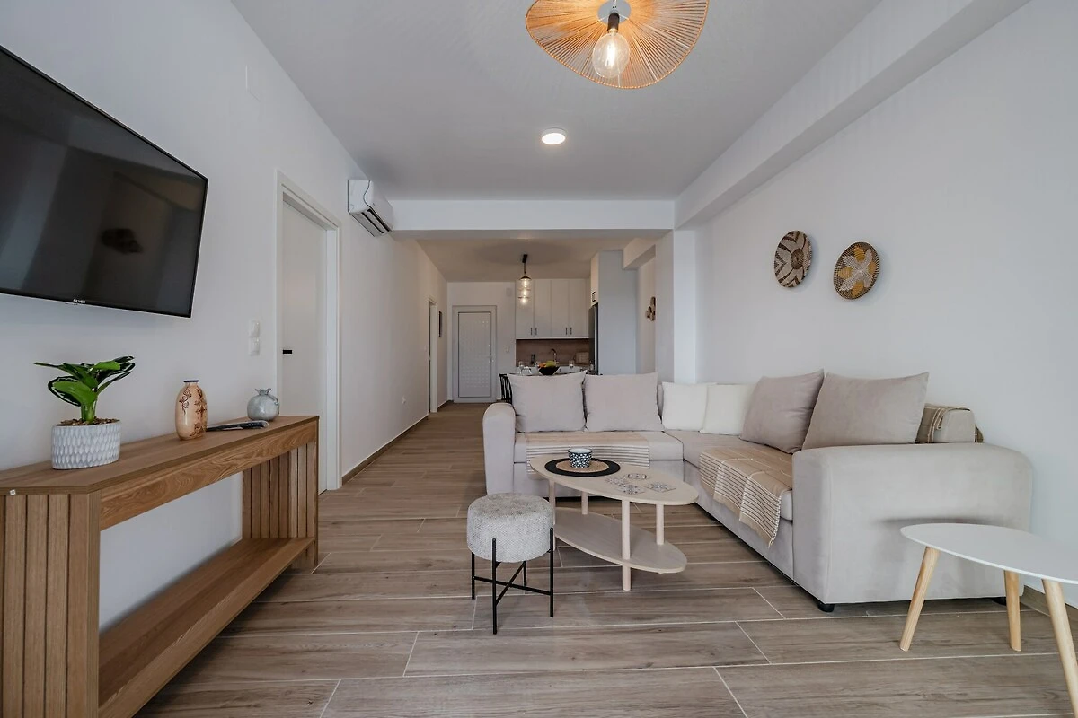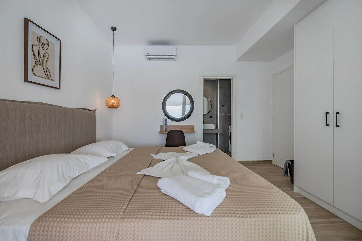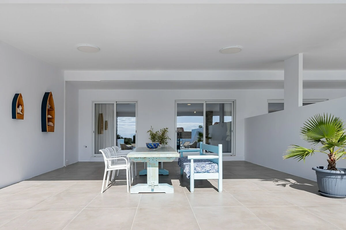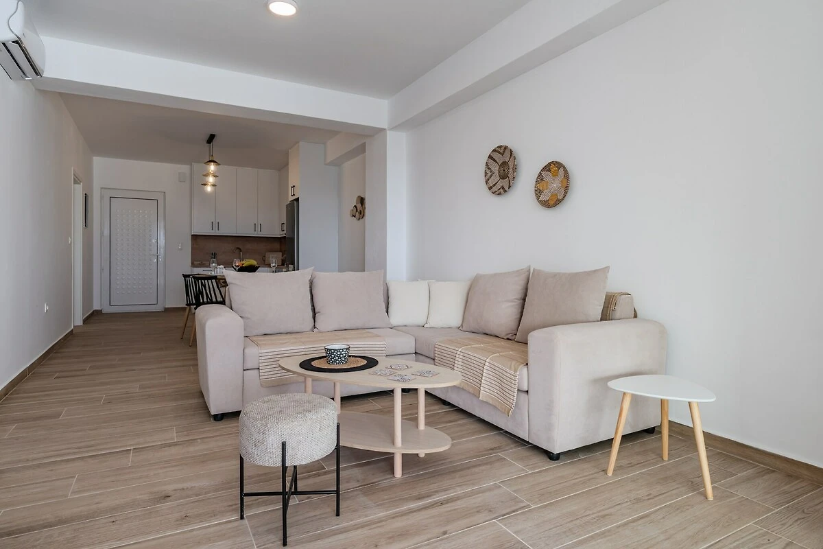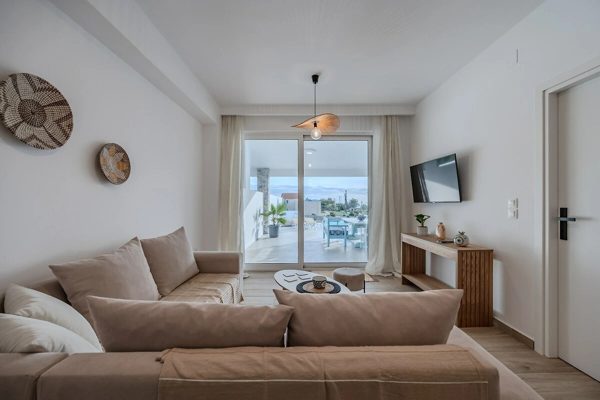 Diese elegante Villa im Erdgeschoss bietet Platz für bis zu vier Gäste und ist ein ruhiger Rückzugsort an der Küste, ideal für Paare oder kleine Familien, die Privatsphäre, Komfort und die Einfachheit des Meeres suchen. Die moderne Inneneinrichtung umfasst zwei gut ausgestattete Schlafzimmer mit eigenem Bad und einen offenen Grundriss mit Wohnzimmer, Küchenzeile und Essbereich. Große Fenster rahmen den Blick auf Garten und Pool ein – ideal zum Entspannen im Grünen in Meeresnähe.