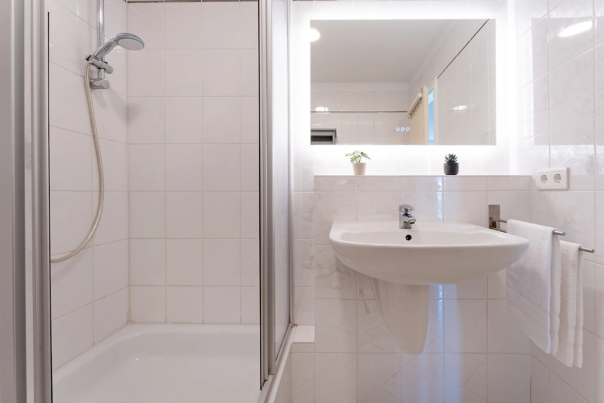 Ein helles und behaglich ausgestattetes Appartement erwartet Sie hier in der 2. Etage. Hier finden Sie ausreichend Platz für bis zu 2 Erwachsene und 1 Kind. Im Wohnraum befindet sich ein ausziehbares Schlafsofa, ein Smart-TV mit Streaming-Diensten zur Selbstanmeldung, eine komplette Einbauküche inklusive Nespresso-Kapselmaschine sowie Geschirrspüler und ein Essbereich. Ein separates Schlafzimmer mit einem Doppelbett (180x200 cm, 2 Matratzen) schliesst sich an. Des weiteren verfügt die Wohnung über ein Duschbad/WC mit Haartrockner und einen Balkon. Der WLAN-Anschluss ist für Sie inklusive.