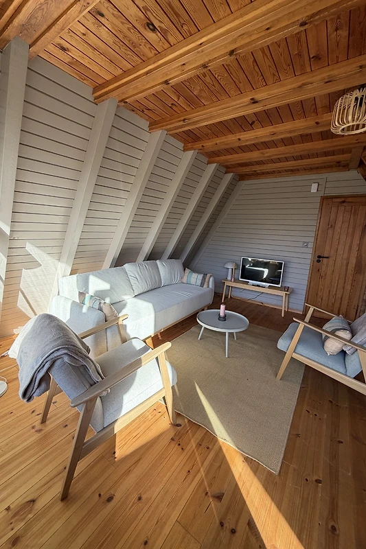 Morgens weckt Sie die frische Ostseeluft, wenige Minuten später stehen Sie bereits am Strand. Am Abend kehren Sie in die warme Atmosphäre der Finnhütte zurück – ein Ort zum Durchatmen, Lesen und Zusammensitzen