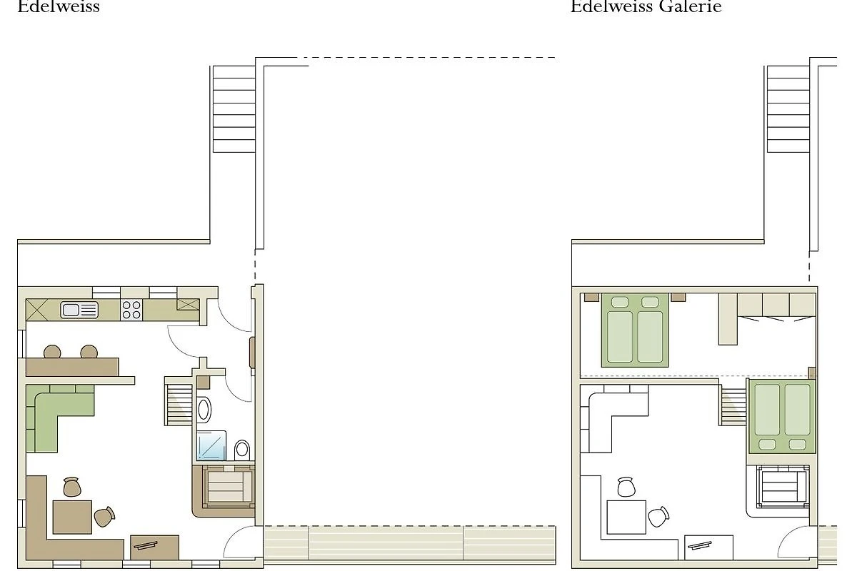 Die gemütliche ca. 55 m² grosse Ferienwohnung Edelweiss liegt im oberen Seitentrakt des Hauses und bietet Platz für 2 bis 4 Personen.