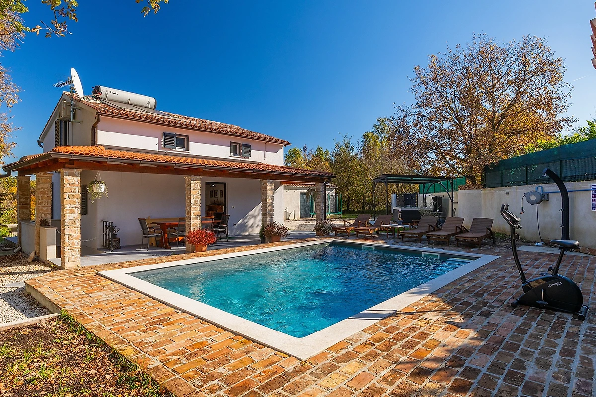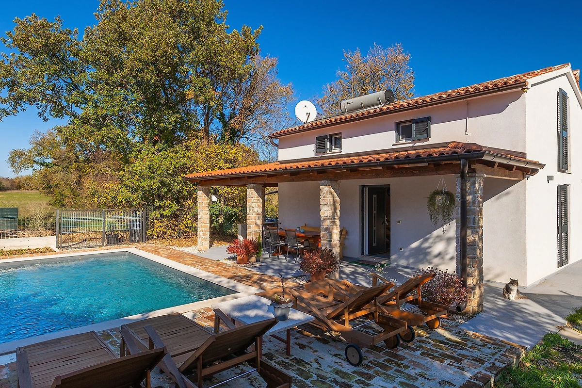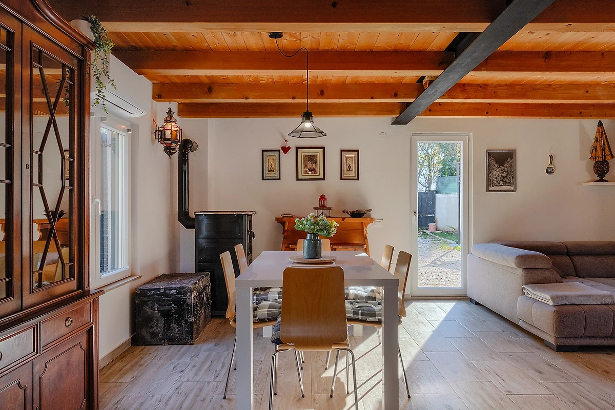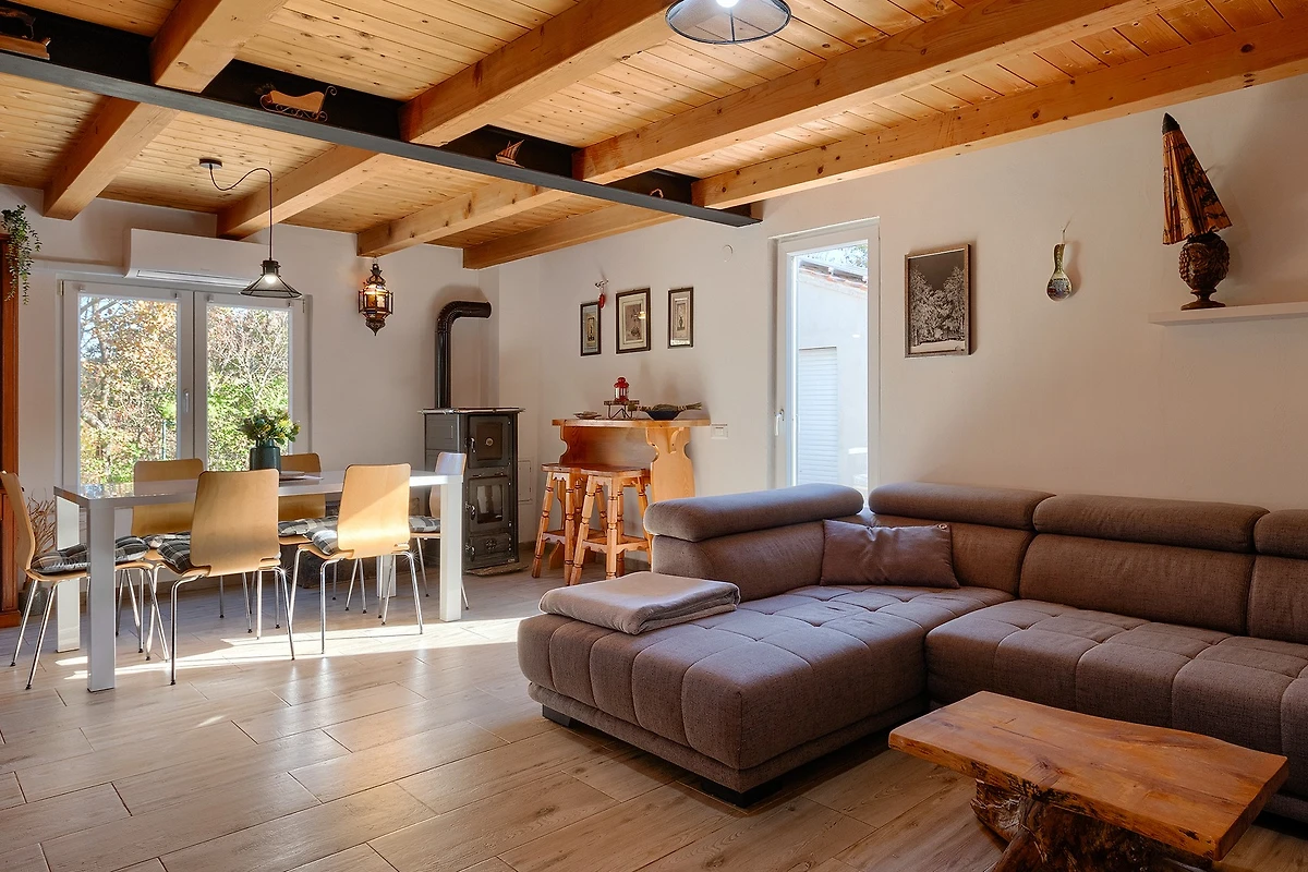Entdecken Sie Villa Mio, einen charmanten ländlichen Rückzugsort, der in der friedlichen Umgebung von Žminj eingebettet ist und ideal für Familien und Paare ist, die einen ruhigen Urlaub suchen. Diese geräumige 115 m² grosse Villa bietet Platz für bis zu 5 Gäste mit ihren durchdacht gestalteten Wohnbereichen.