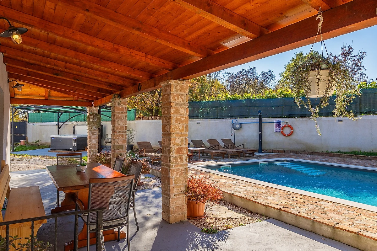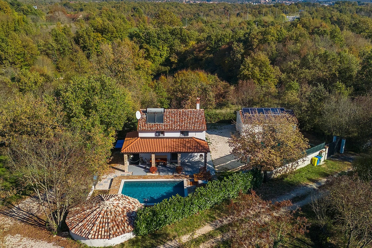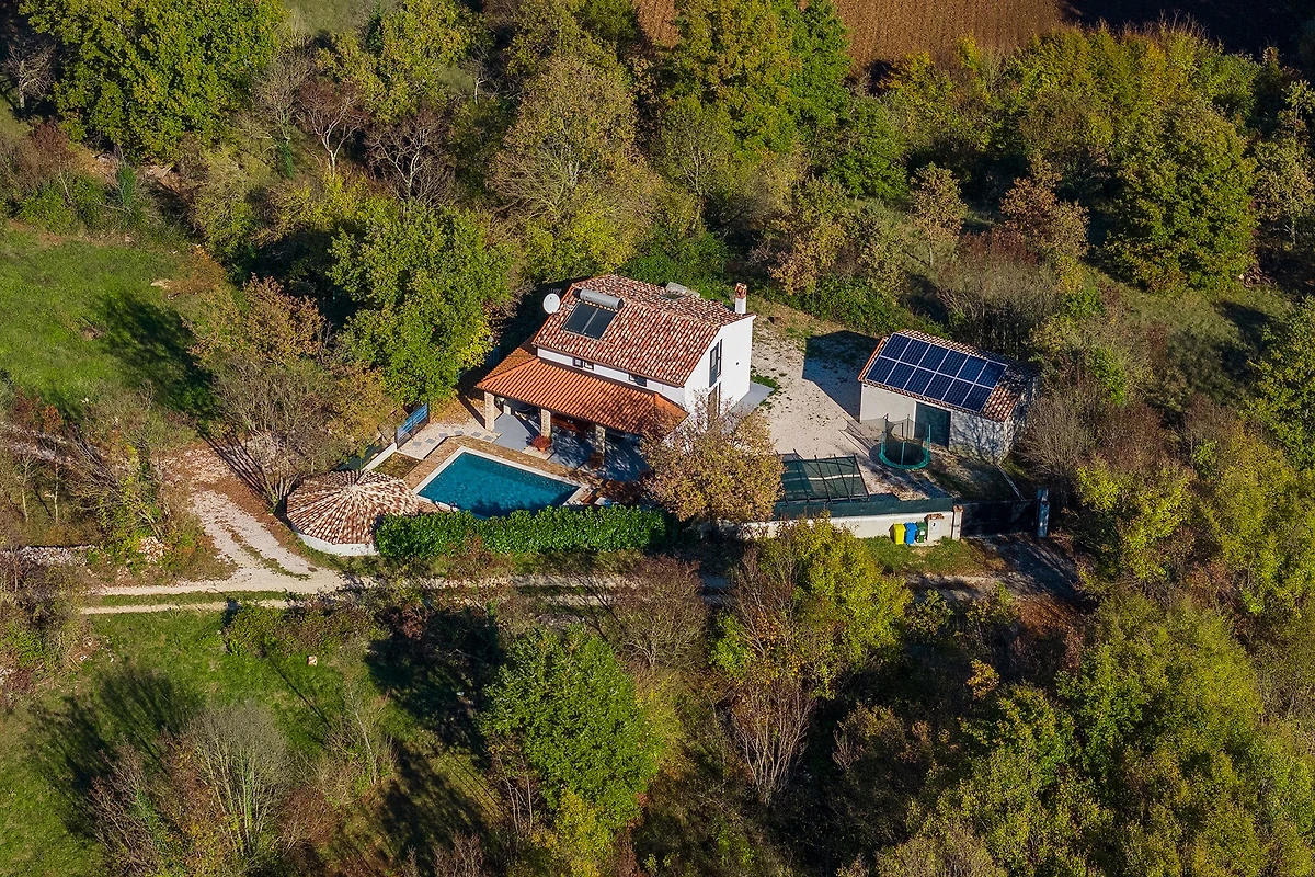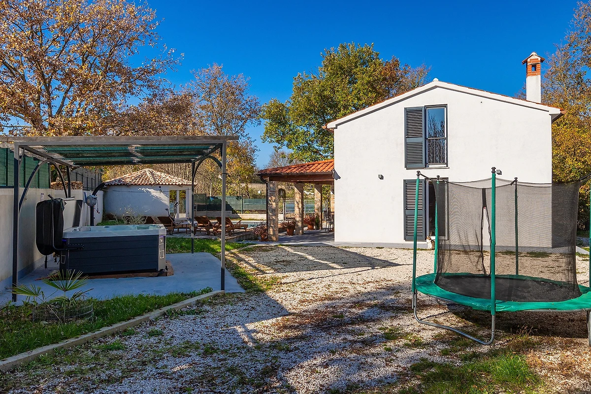 Entdecken Sie Villa Mio, einen charmanten ländlichen Rückzugsort, der in der friedlichen Umgebung von Žminj eingebettet ist und ideal für Familien und Paare ist, die einen ruhigen Urlaub suchen. Diese geräumige 115 m² grosse Villa bietet Platz für bis zu 5 Gäste mit ihren durchdacht gestalteten Wohnbereichen.