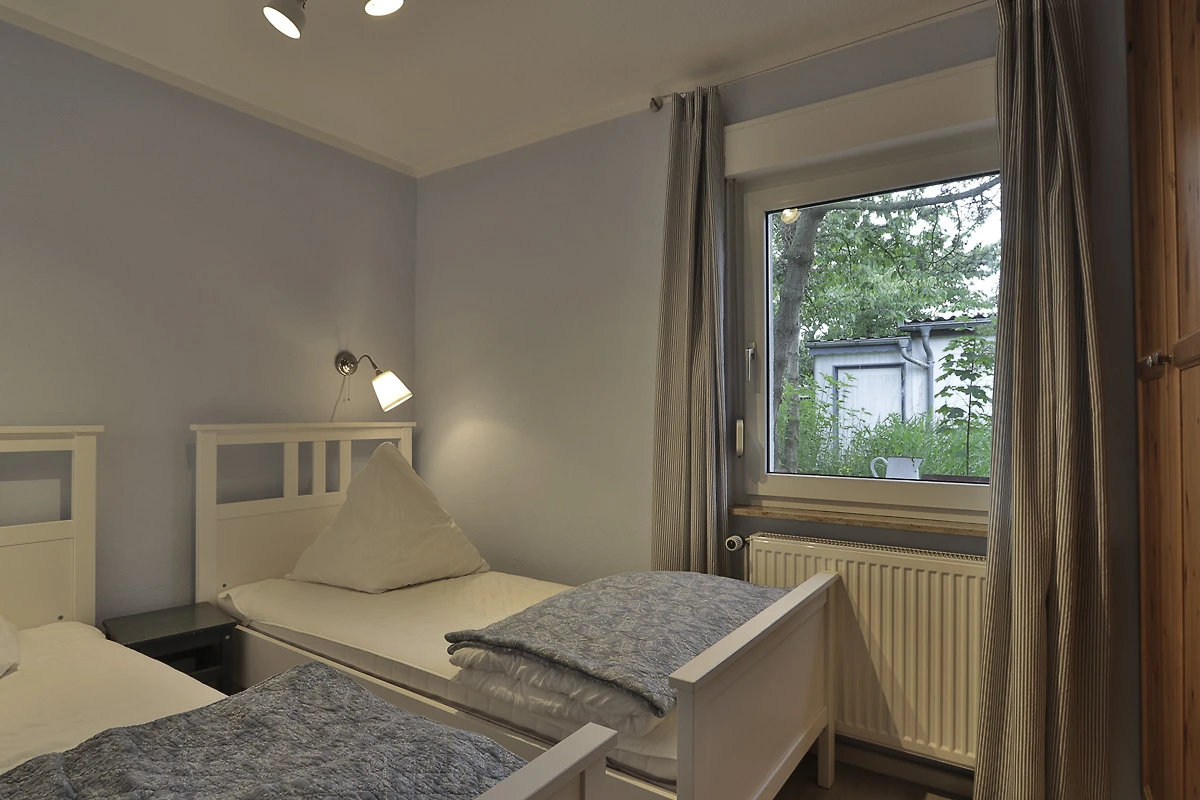 Traumhaft im Grünen gelegener Doppelbungalow "Paul und Paula" mit Terrasse und Garten, Terrassenmöbel, Sonnenschirm und Strandkorb laden zum entspannen ein.