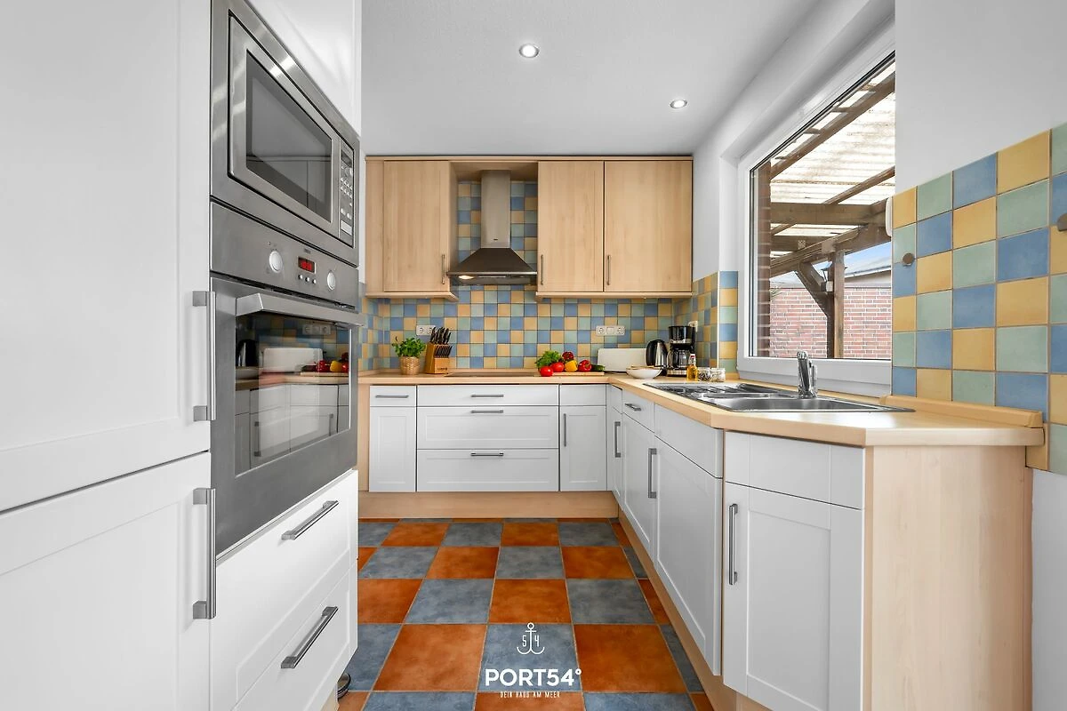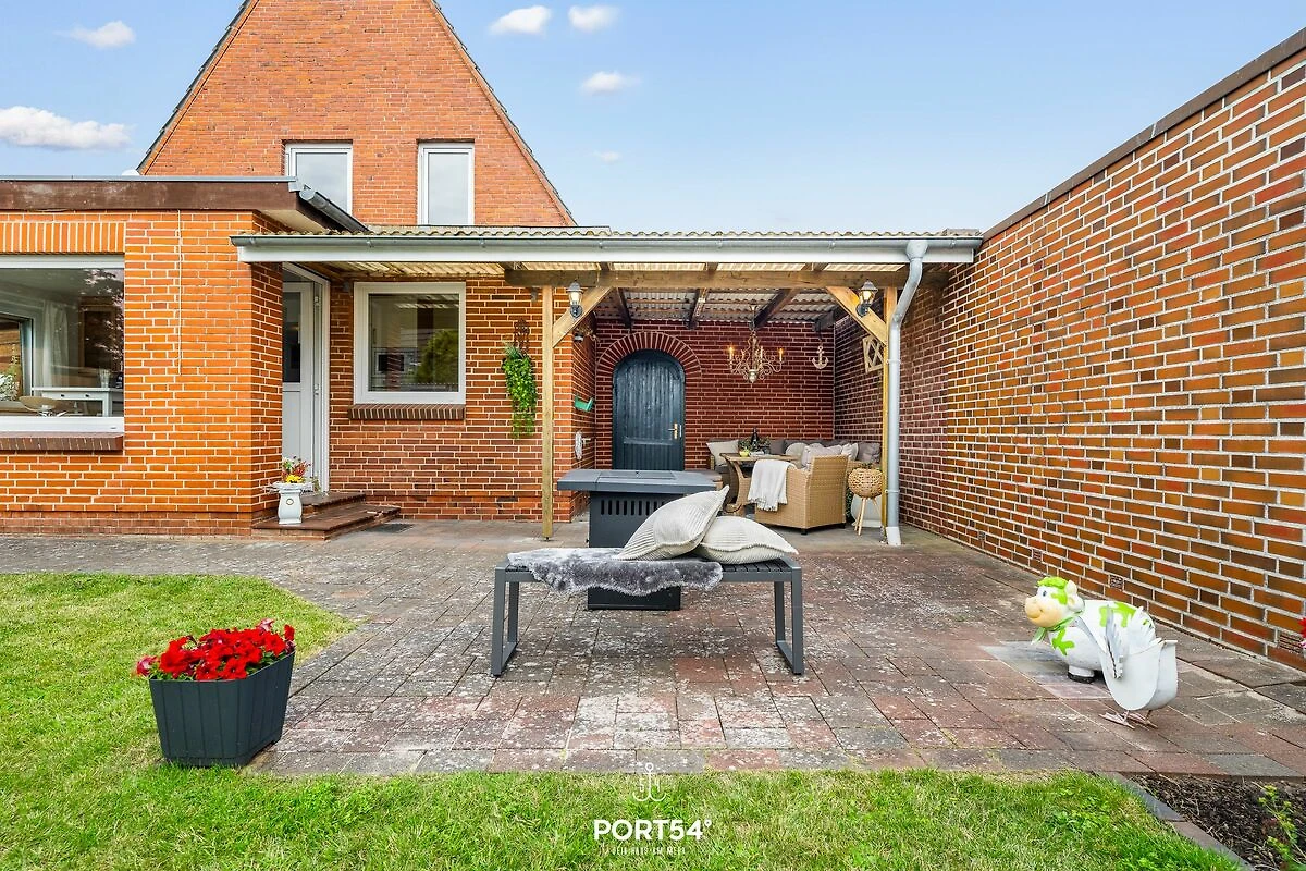 Auch der Außenbereich lässt keine Wünsche offen: Das komplett eingezäunte Grundstück sorgt für Privatsphäre und Sicherheit, besonders für Familien mit Kindern oder Reisende mit Hund. Eine überdachte Terrasse mit gemütlicher Lounge-Ecke und Feuerstelle lädt zu entspannten Abenden im Freien ein. Ein Strandkorb bietet maritimes Urlaubsgefühl, und Fahrräder können bequem und sicher abgestellt werden.