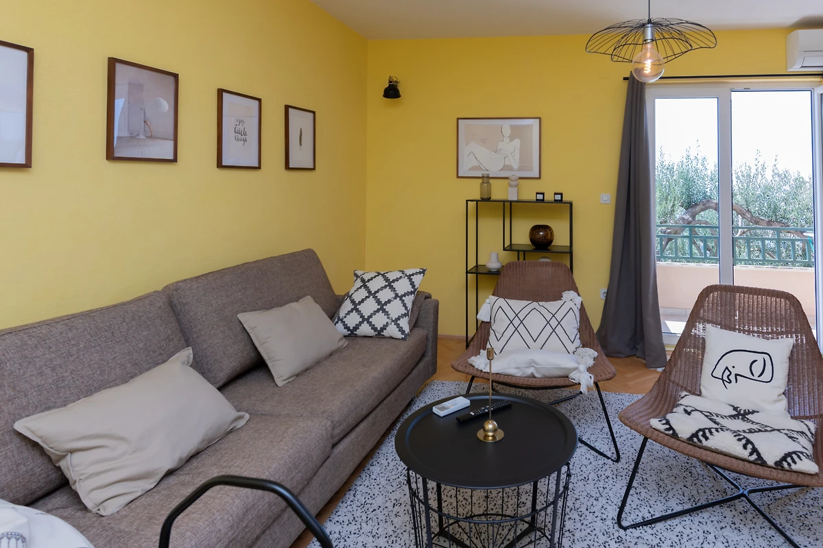 Bleiben Sie mit kostenlosem WLAN verbunden und geniessen Sie Unterhaltung auf dem Satelliten-TV. Die Wohnung ist klimatisiert, perfekt für die warmen Mittelmeer-Tage. Naturliebhaber werden den privaten Garten, den Grillbereich, den Balkon und die Terrasse zu schätzen wissen, die mehrere Räume zum Entspannen und Eintauchen in die wunderschöne Umgebung bieten.