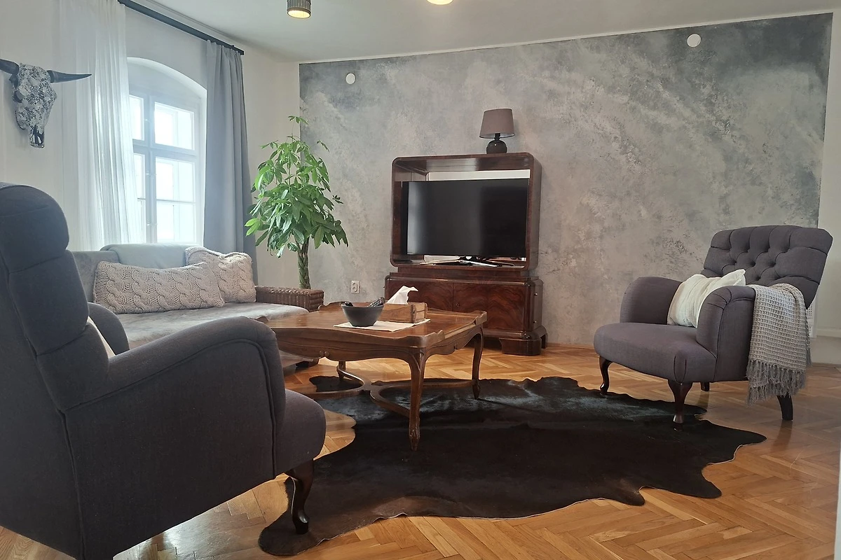 Erleben Sie Ihre perfekte Urlaubszeit in unserer UNiKAT Ferienwohnung in Győr, mit einer großzügigen Wohnfläche von mehr als 130 Quadratmetern. Diese exklusive Wohnung verfügt über 2 gemütlich eingerichtete Schlafzimmer. Zusätzlich kann ein Schlafsofa für 2 Personen im Wohnbereich genutzt werden. Die Ferienwohnung ist ideal für Familien oder Reisegemeinschaften und unmittelbar am Széchenyi tér im historischen Zentrum gelegen. Auch für Paare mit Wunsch nach Privatsphäre ist diese Ferienwohnung perfekt geeignet, da sie trotz ihrer Größe eine gemütliche Atmosphäre bietet.
