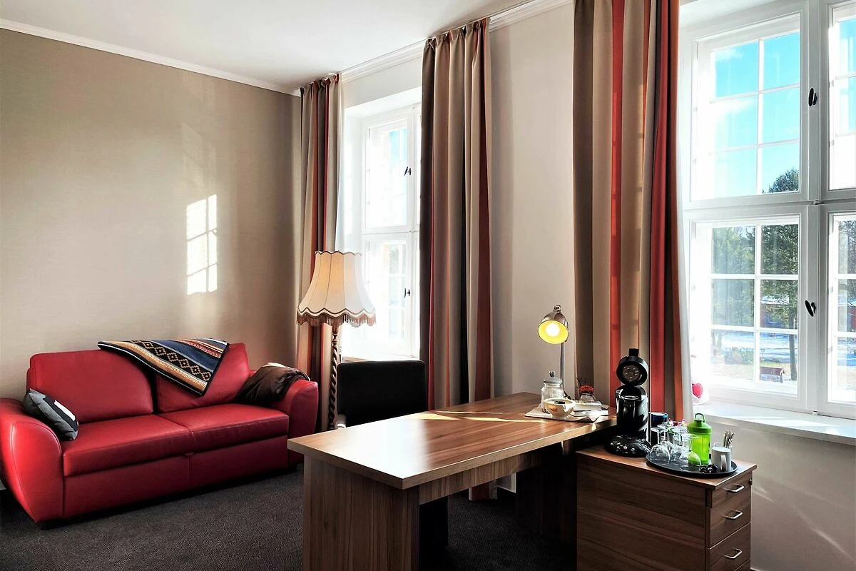 Eine Mischung aus denkmalgeschützten Industrieflair und moderner Ausstattung macht den Aufenthalt im IBS zu etwas Besonderem. Auf 3 Etagen erstrecken sich die Hotelzimmer, Speise-, Seminar- und Aufenthaltsräume. Der grosse Garten lädt zum Verweilen ein. Kostenloses WLAN, Parkplätze, Spielgeräte für Kinder und ein abschliessbarer Fahrradraum sind selbstverständlich. Neben dem reichhaltigen Frühstück stehen Kalt- und Heissgetränke zur Selbstbedienung ganztägig zur Verfügung. Die ruhige, aber zentrale Lage sowie das einzigartige Ambiente des Kulturdenkmals sind bei unseren Gästen besonders beliebt.