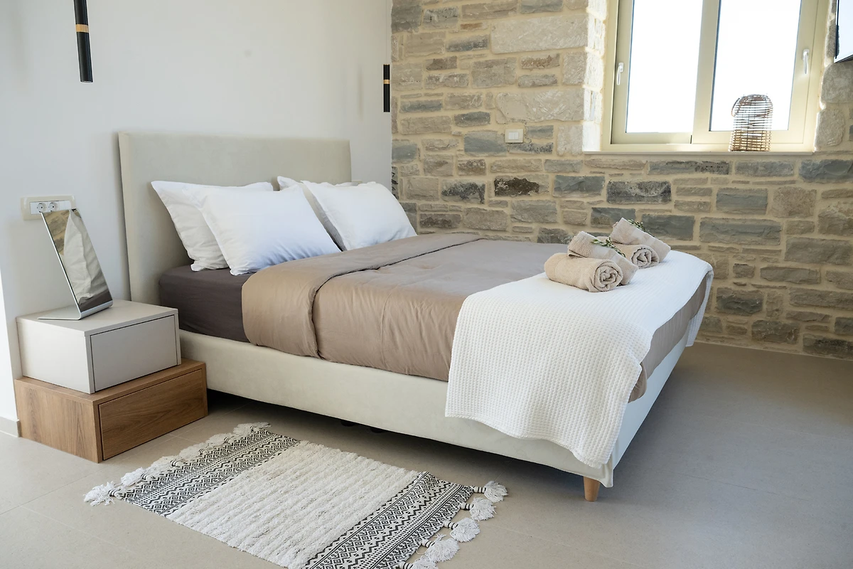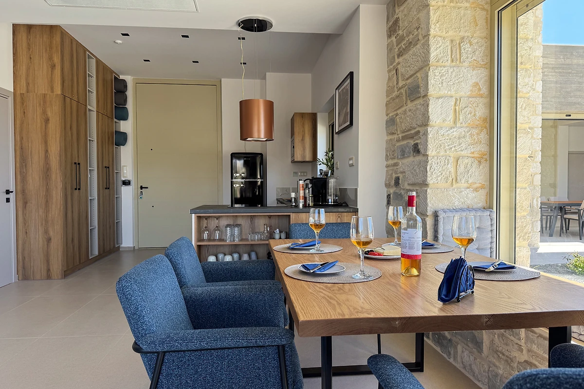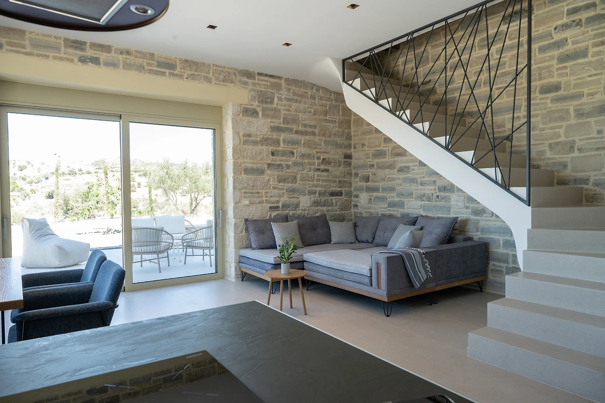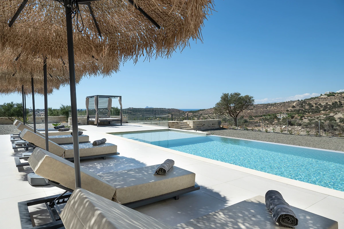 Die Villa Minas bietet zusammen mit der Villa Minos eine ideale Möglichkeit, um mit bis zu 13 Personen einen entspannten und zugleich komfortablen Urlaub zu verbringen. Die beiden modernen Häuser verfügen gemeinsam über 5 Schlafzimmer und 5 Badezimmer und eignen sich perfekt für große Familien oder Gruppen von Freunden, die Wert auf Gemeinschaft und Privatsphäre legen.