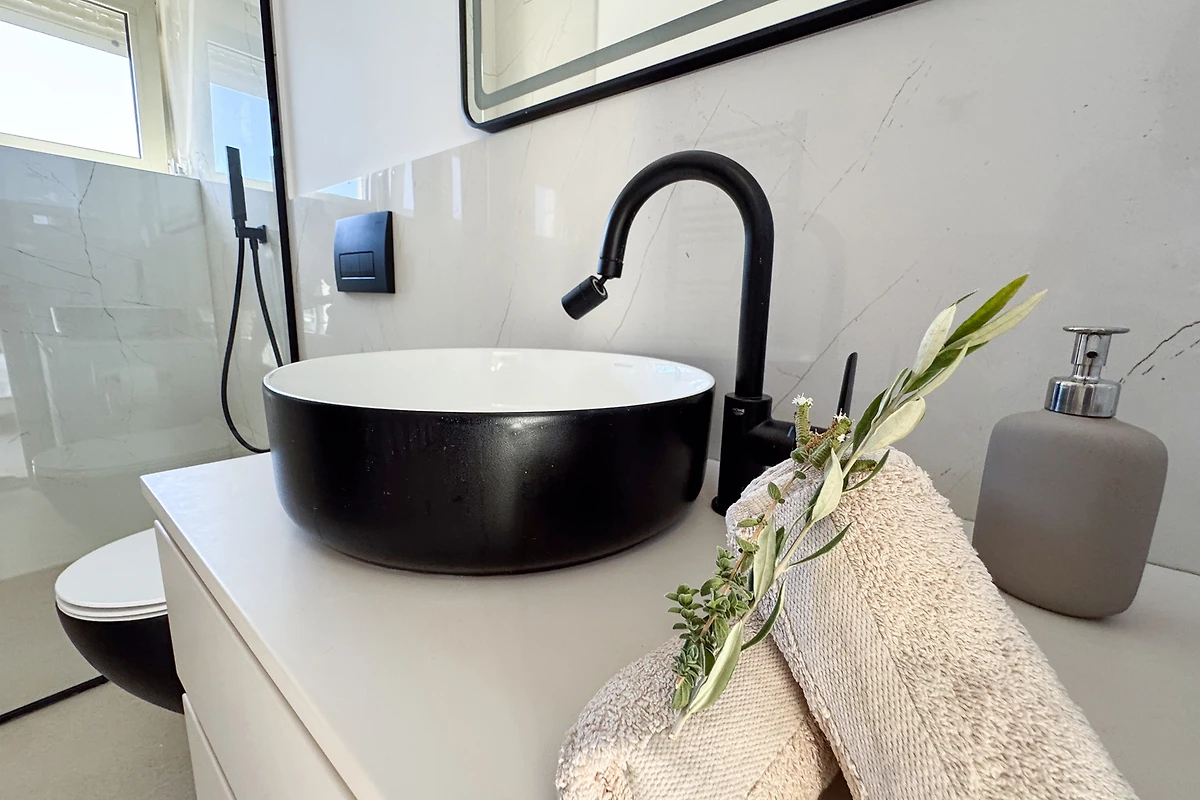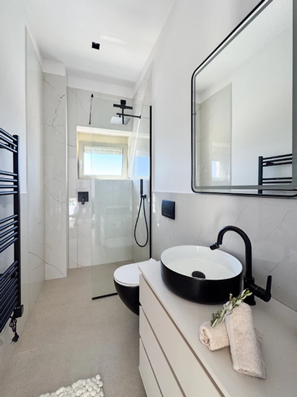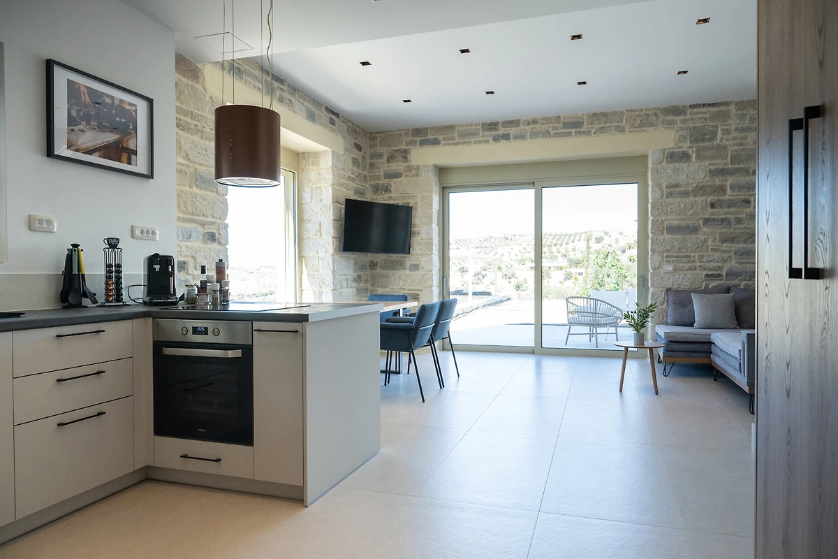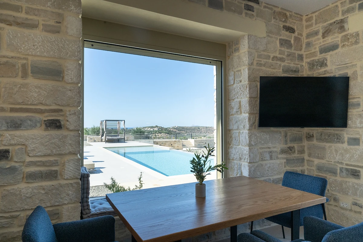 Die Villa Minas bietet zusammen mit der Villa Minos eine ideale Möglichkeit, um mit bis zu 13 Personen einen entspannten und zugleich komfortablen Urlaub zu verbringen. Die beiden modernen Häuser verfügen gemeinsam über 5 Schlafzimmer und 5 Badezimmer und eignen sich perfekt für große Familien oder Gruppen von Freunden, die Wert auf Gemeinschaft und Privatsphäre legen.