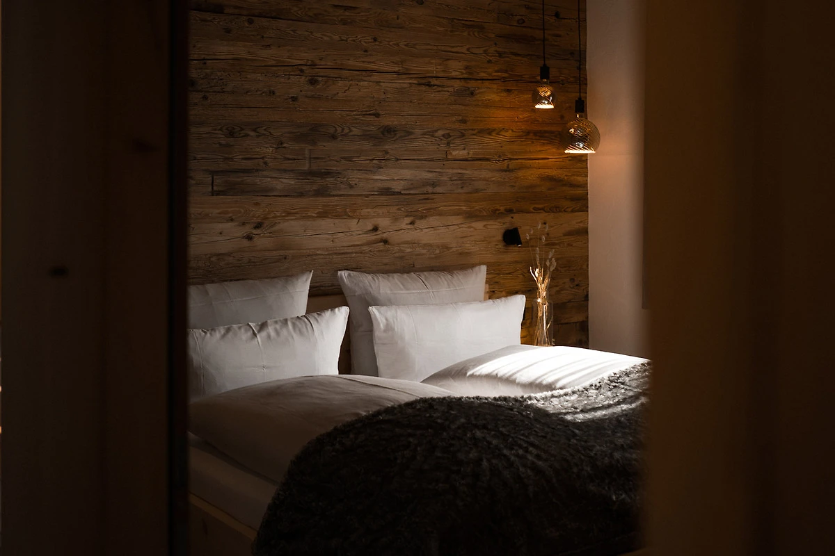* Schlafzimmer mit wohlduftendem Zirben-Kuschelbett