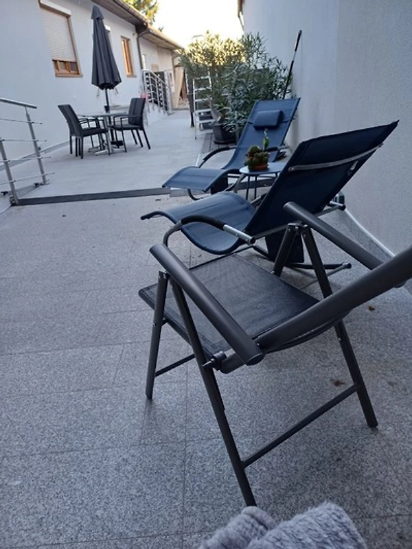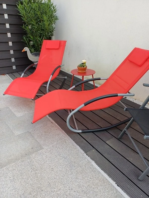 Im Aussenbereich befindet sich ein kleiner Swimmingpool und Liegen um nach dem Radfahren sich ein wenig zu entspannen.