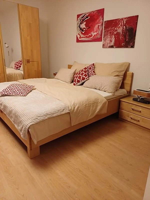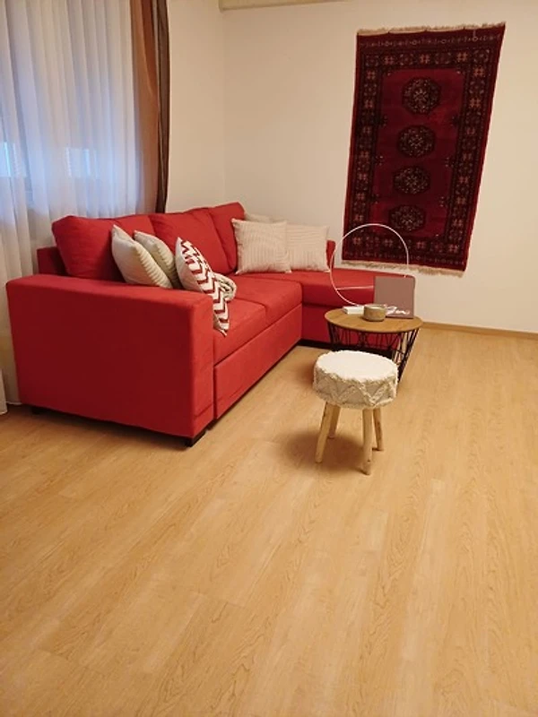 Das geschmackvoll, klimatisierte und moderne Apartment 2 hat 70 m² Wohnfläche. Das Wohnschlafzimmer verfügt über eine stylische, ausziehbare Wohnzimmergarnitur und bietet Ihnen dadurch die Möglichkeit noch 2 Personen mit zu nehmen. Smart TV`s sind natürlich im Wohnzschlafzimmer und Küche vorhanden. Die vollausgestattete Küche ladet sie zum Zubereiten eines ausgiebigen Frühstücks oder zum Kochen von gutem Essen ein.