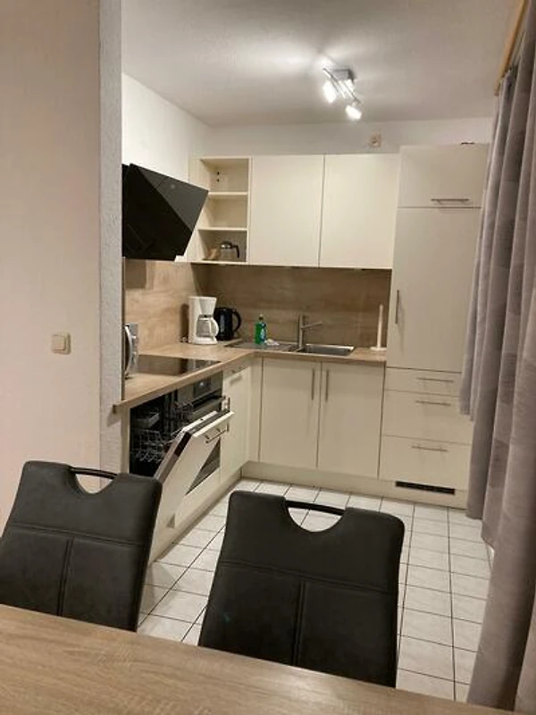 Die Wohnung zeichnet sich durch eine hochwertige Innenausstattung mit Holzböden und geschmackvollen Möbeln aus, die eine warme und einladende Atmosphäre schaffen. Die voll ausgestattete Küchenzeile mit Spülmaschine, Kaffeemaschine und Wasserkocher macht die Selbstversorgung zum Kinderspiel. Ein großer Esstisch lädt zu gemeinsamen Mahlzeiten und geselligen Abenden ein.