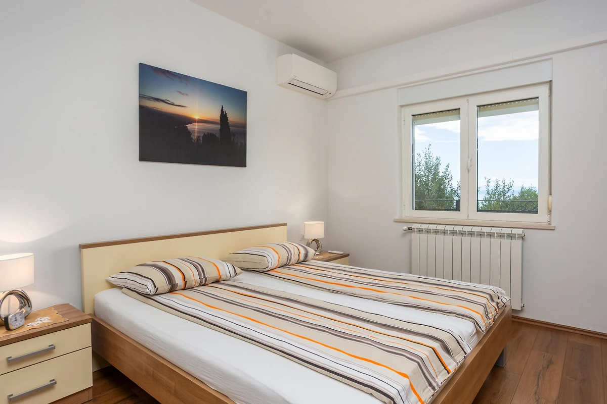 Entdecken Sie eine charmante 3-Zimmer-Wohnung, die im malerischen Dorf Bregi versteckt liegt und ideal für Familien und Paare ist, die einen friedlichen kroatischen Urlaub suchen. Diese geräumige 91m² grosse Immobilie bietet komfortable Unterkunft für bis zu 5 Gäste und stellt ein perfektes Zuhause auf Zeit dar.