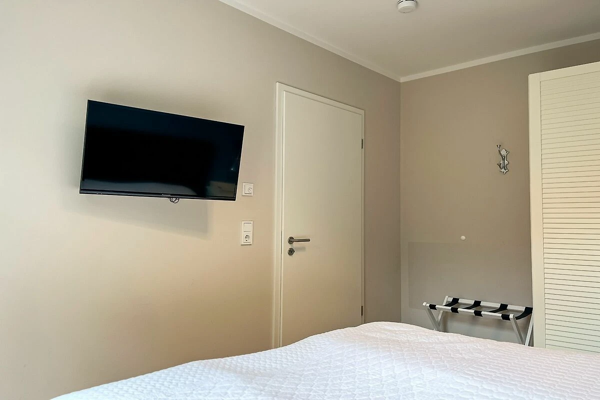 Im separaten Schlafzimmer erwartet Dich ein gemütliches Doppelbett (2x 90x200 cm). Auch hier steht Dir ein TV zur Verfügung – für entspannte Abende im Bett.