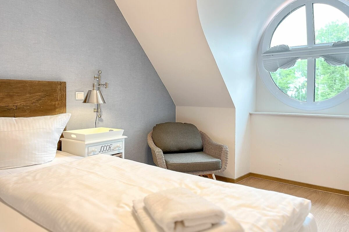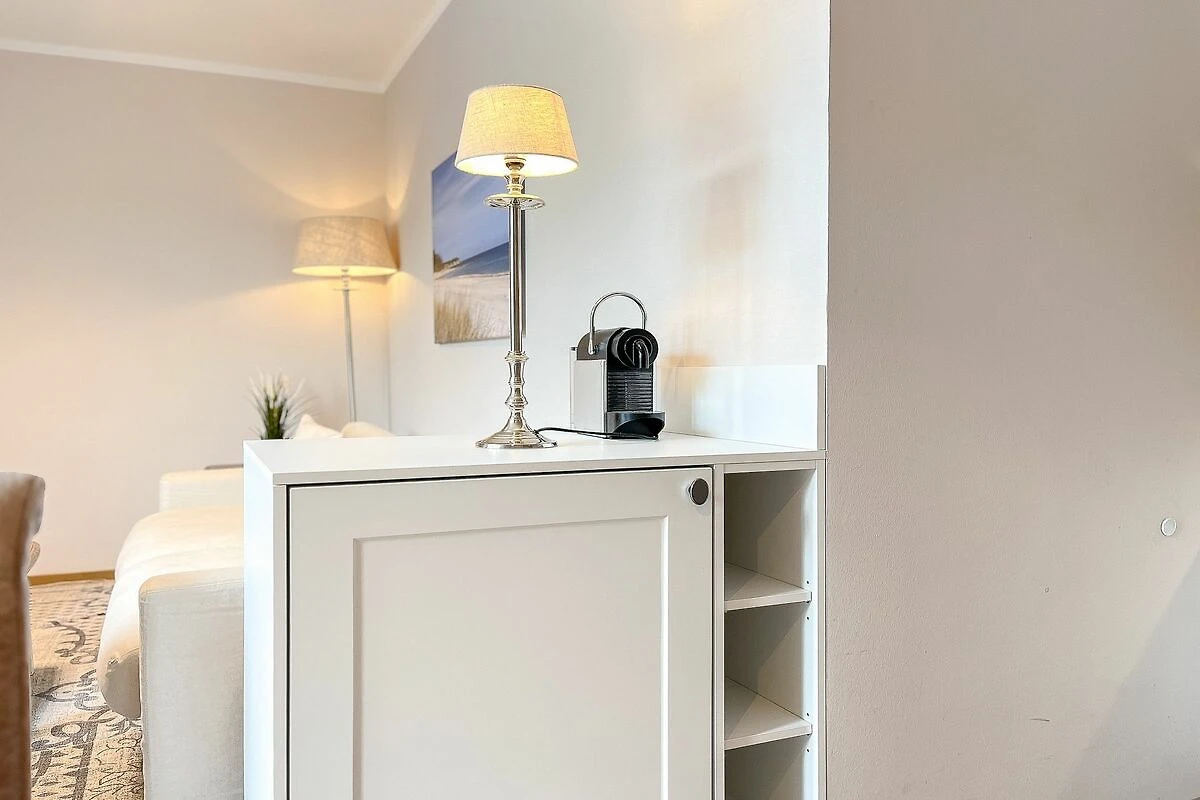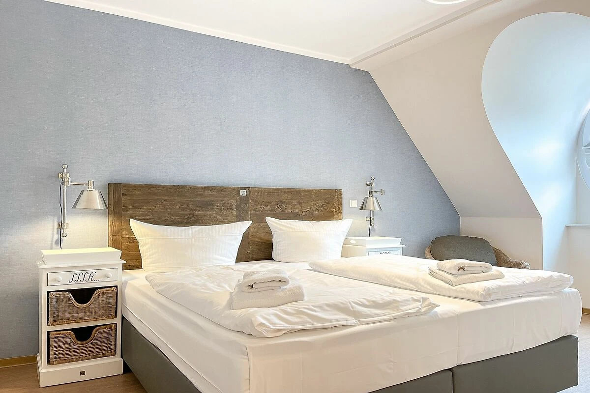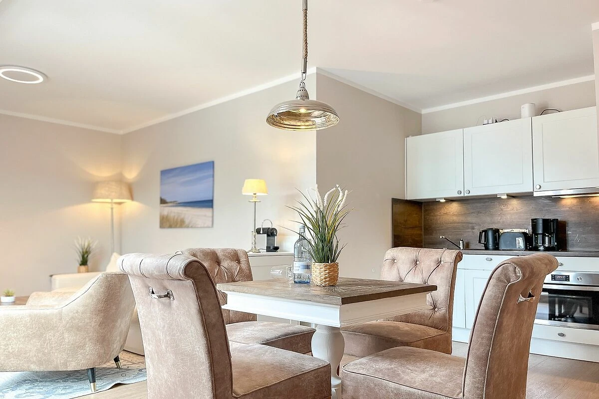 Das ca. 50 m² große Apartment im 2. Stock eignet sich ideal für Paare und Familien, die Wert auf stilvolle Ausstattung und Entspannung in direkter Strandnähe legen.