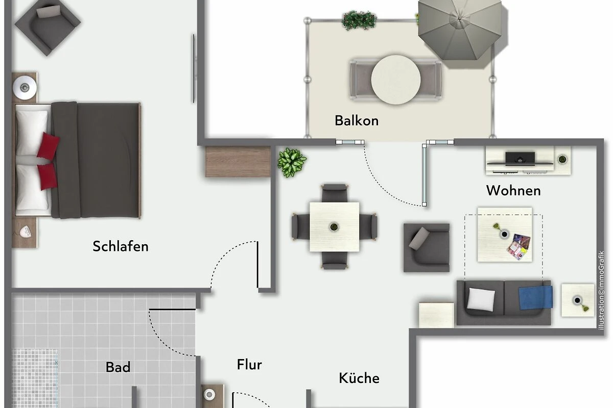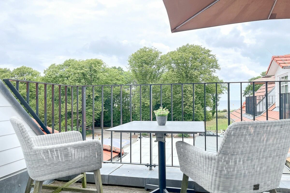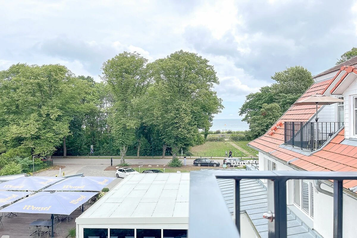 Ein besonderes Highlight dieser Wohnung ist der möblierte Balkon mit Meerblick – ideal für ein Frühstück an der frischen Luft oder ein Glas Wein am Abend.