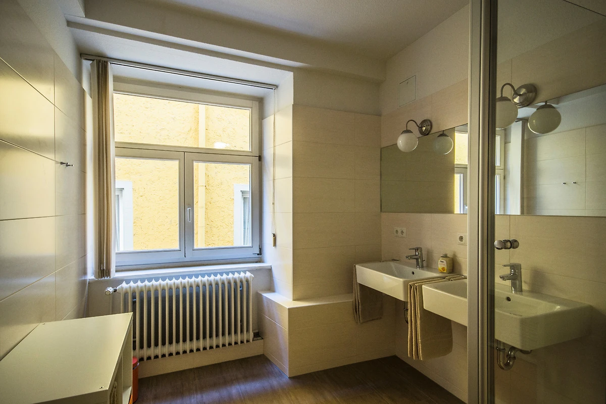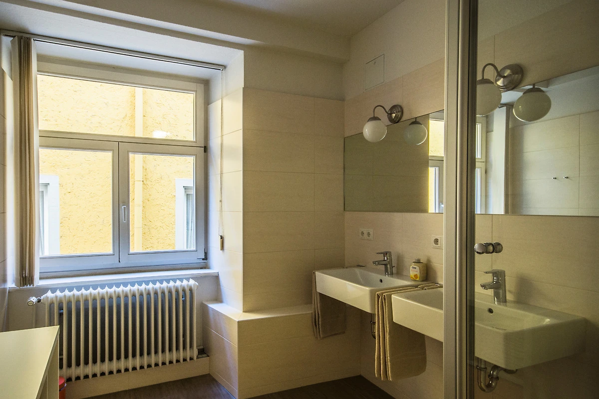 Ein helles Tageslichtbad mit Dusche und ein separates WC