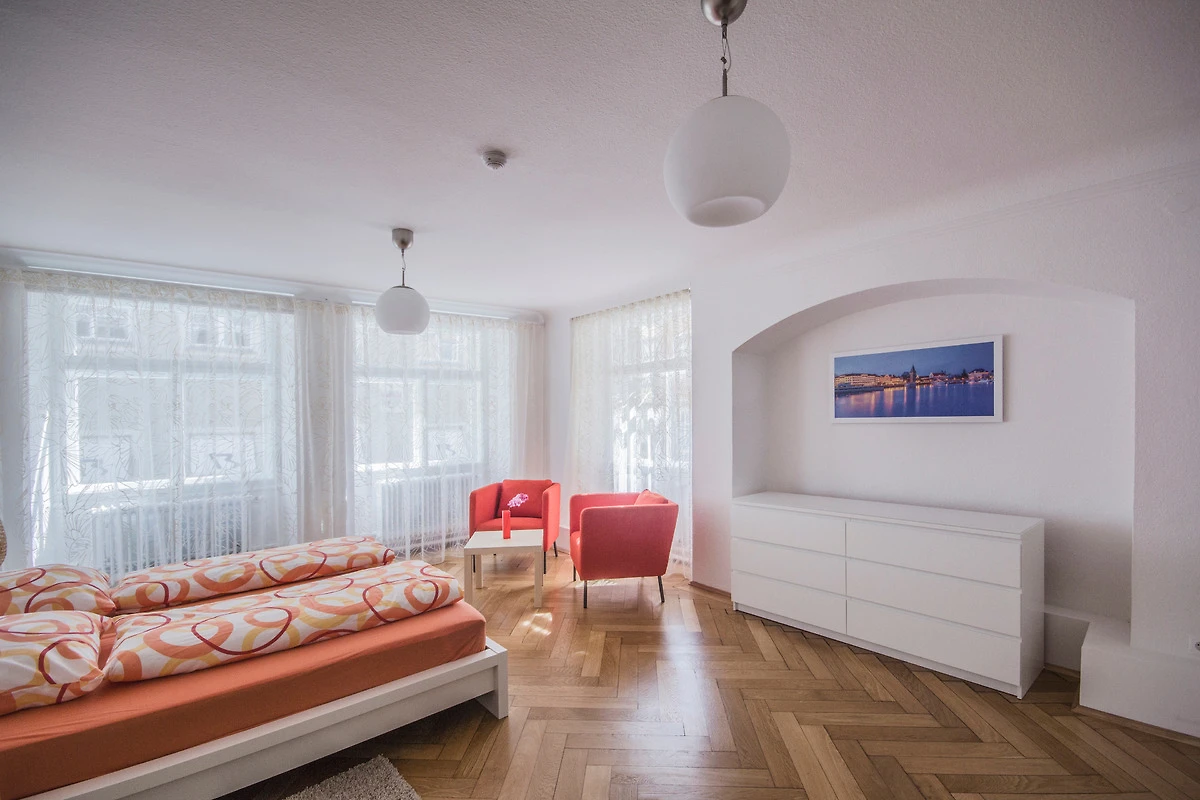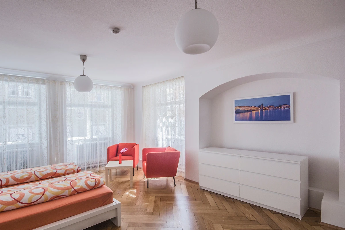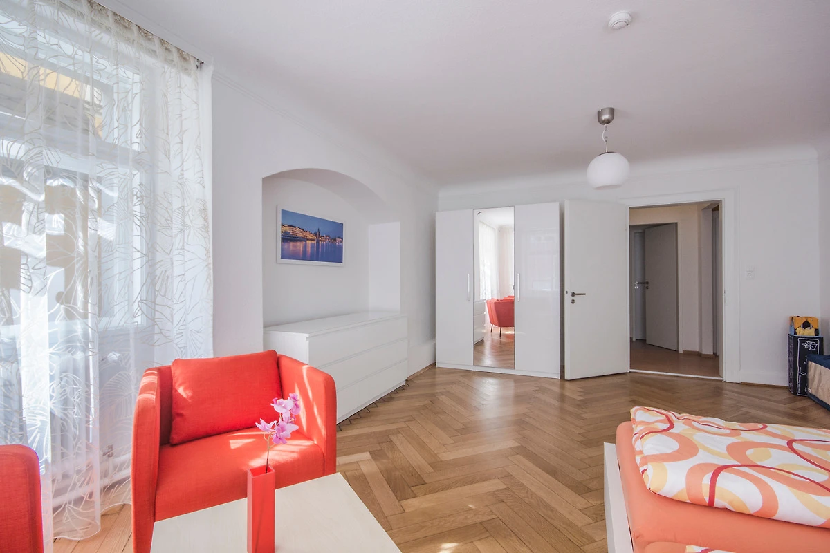 Hier wohnen Sie in einem Stilmix von Moderne und traditionellem Lindauer Baustil mit Holzparkett in allen Räumen.