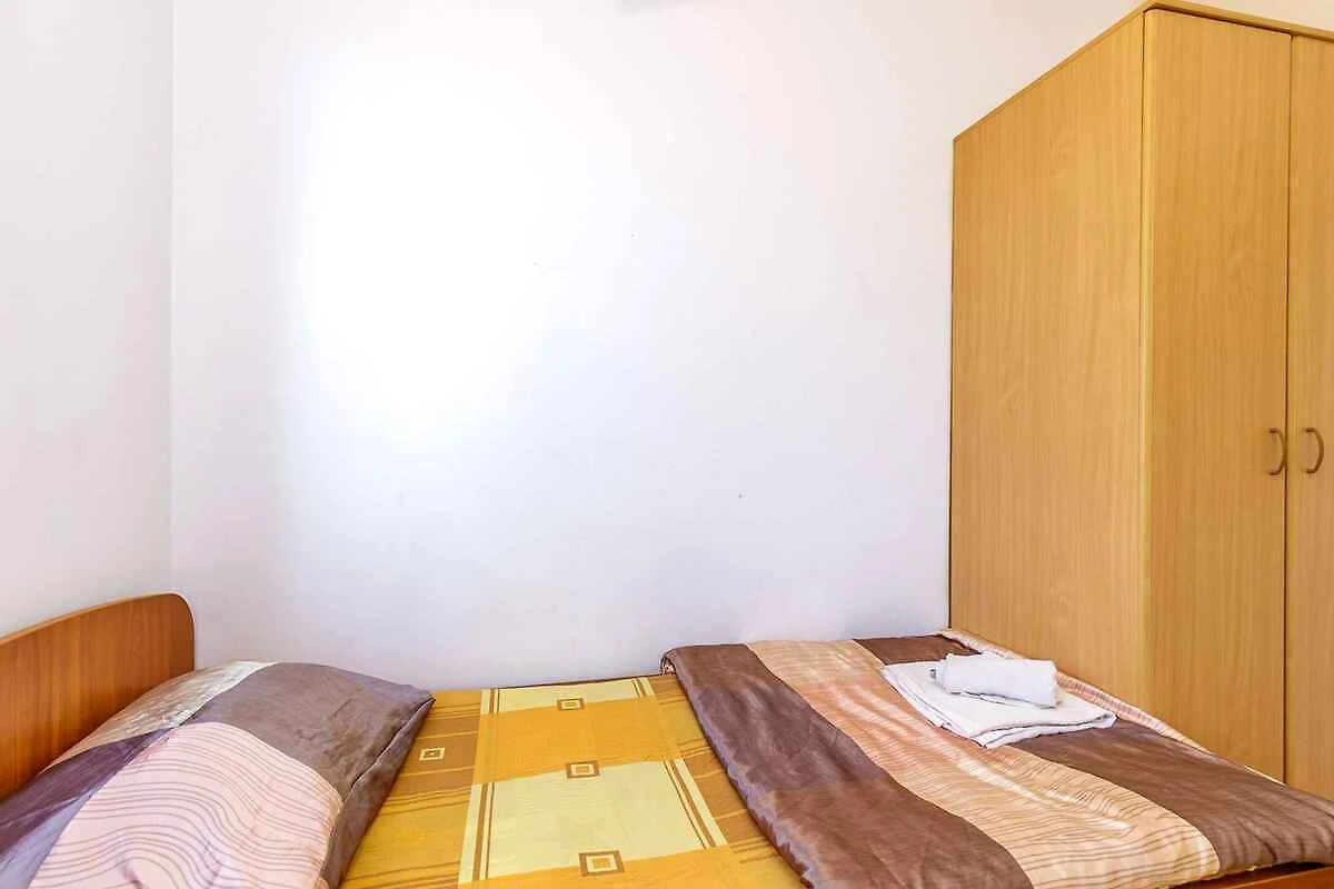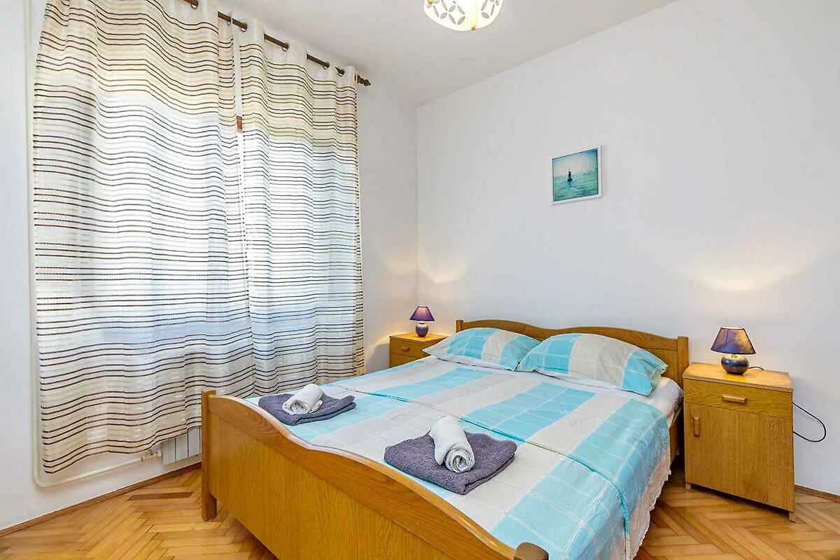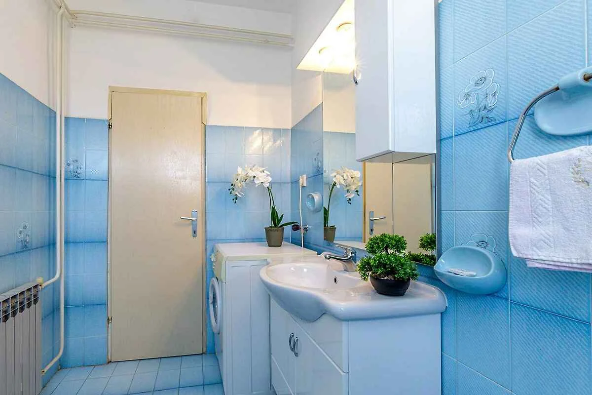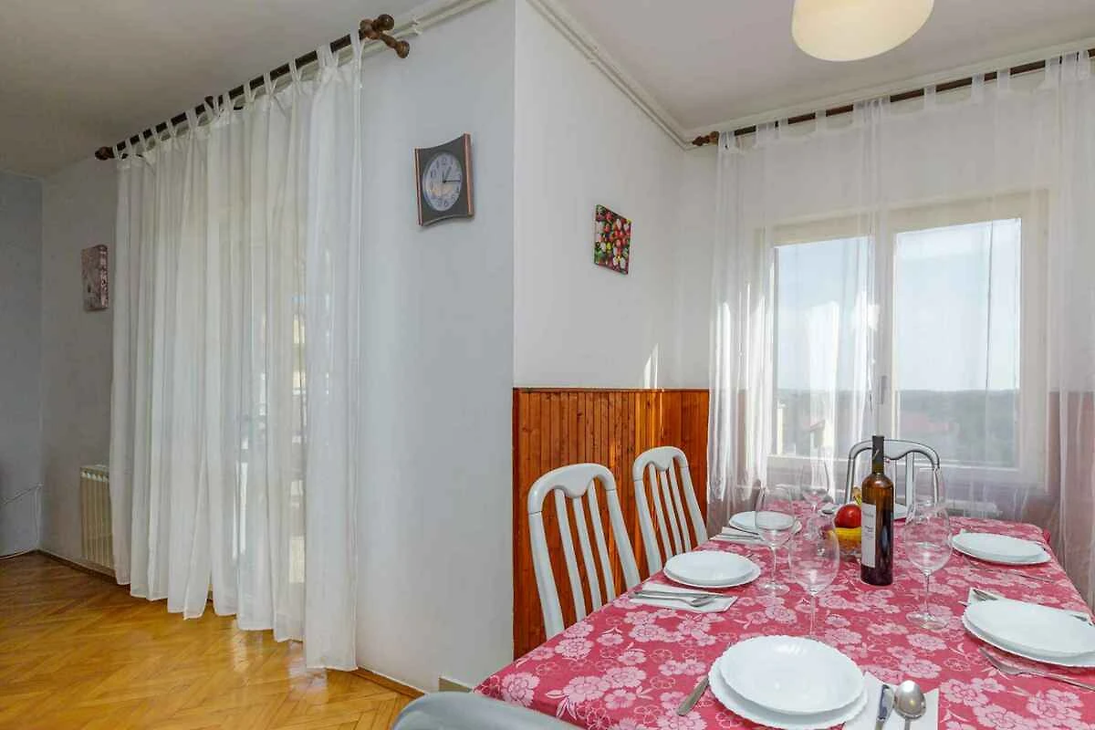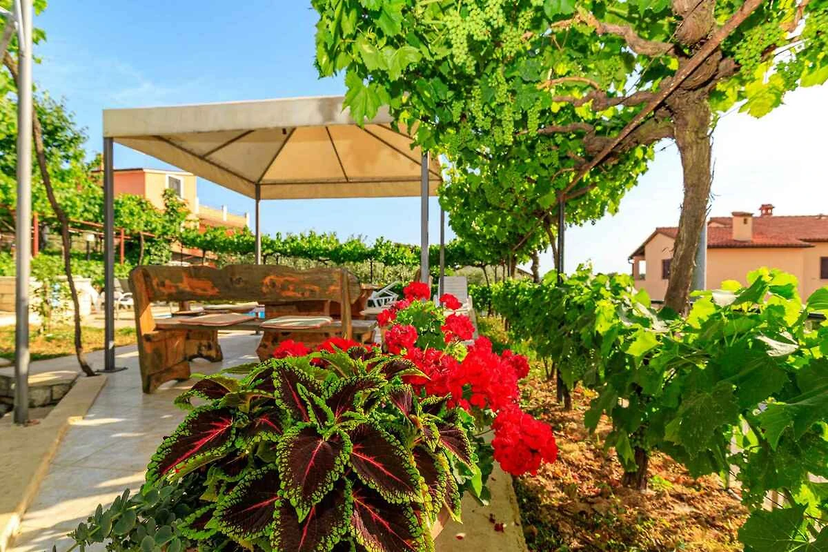 Pula. Die Ferienwohnung befindet sich auf einem geschlossenen Gartengrundstück mit Wiese und Bäumen, von einem Zaun begrenzt. Die Zufahrt erfolgt über eine Nebenstrasse (asphaltiert). Parkplatz auf dem Grundstück.
