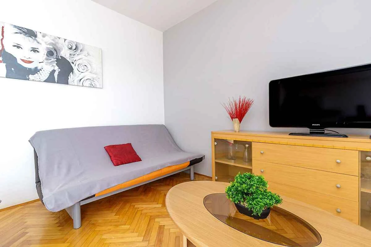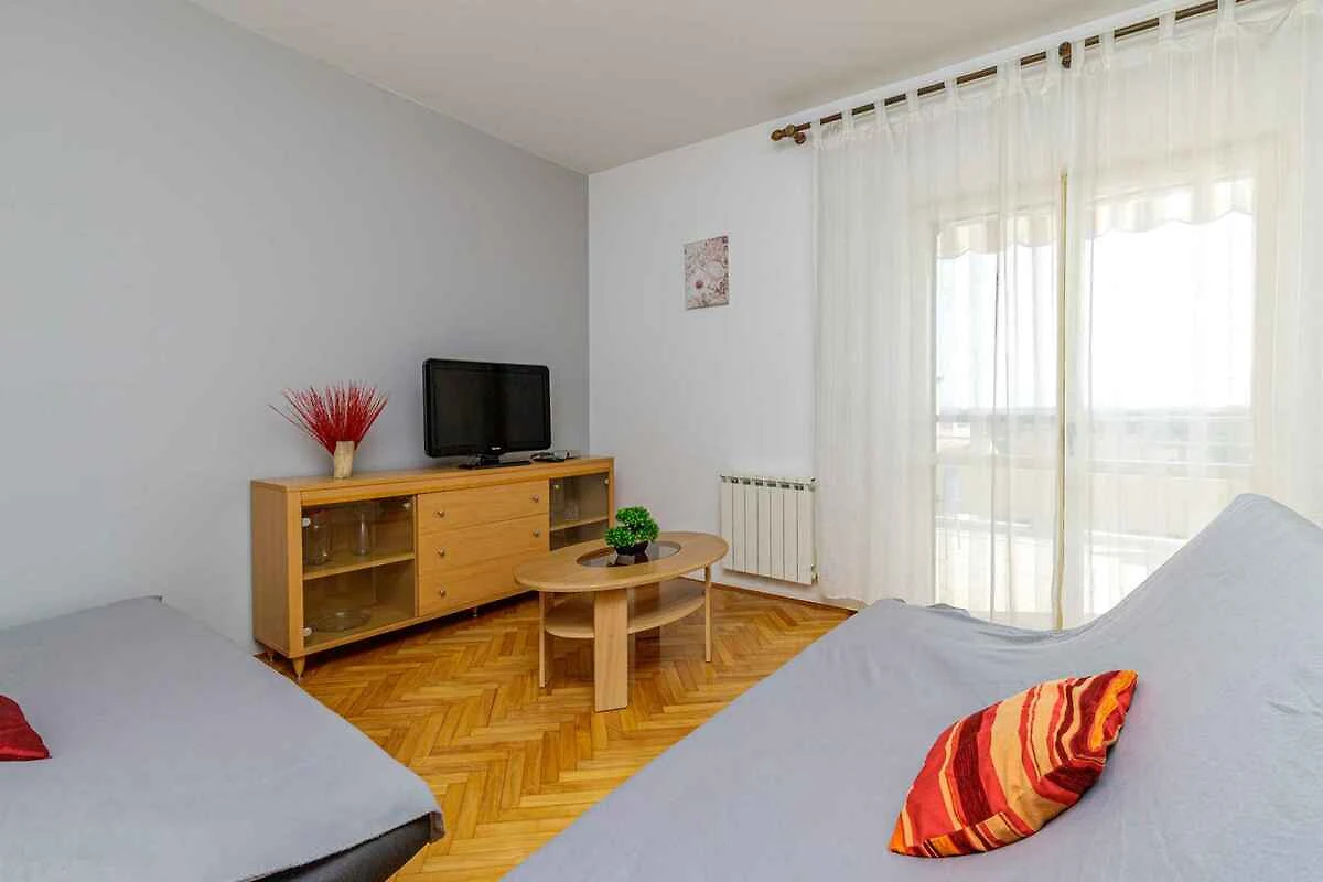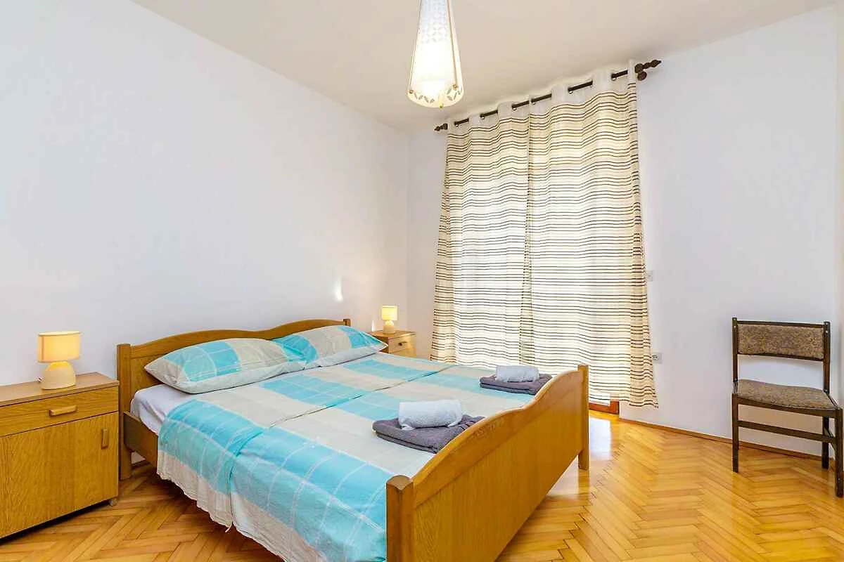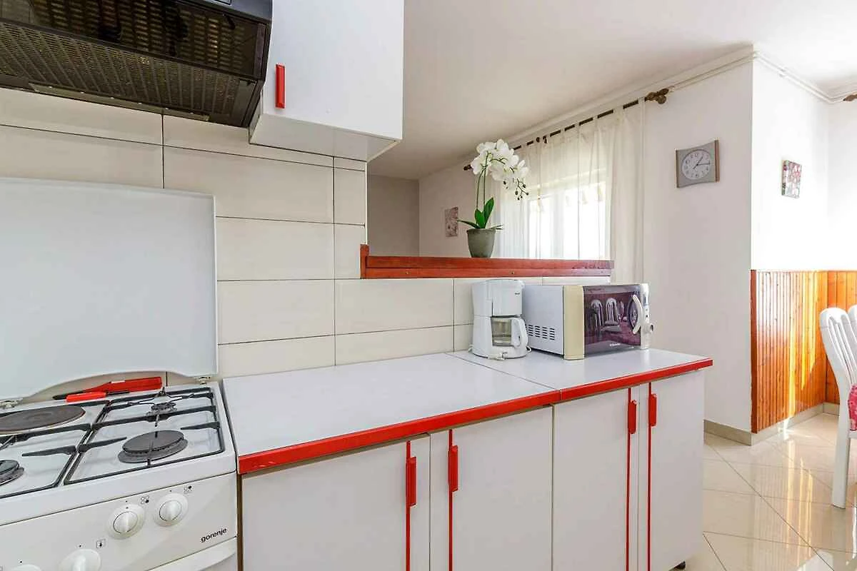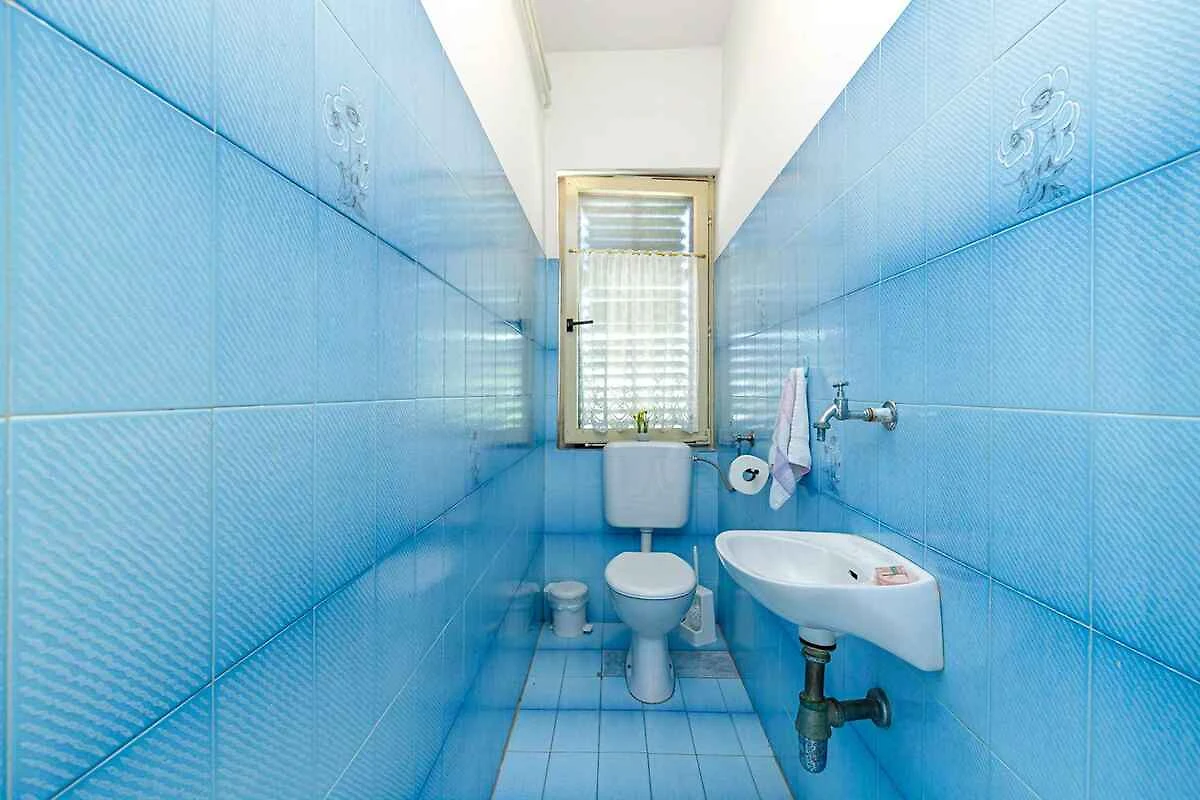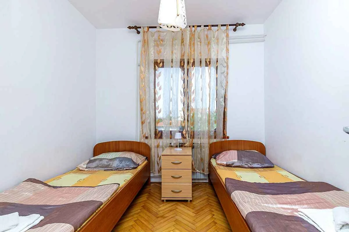 Pula. Die Ferienwohnung befindet sich auf einem geschlossenen Gartengrundstück mit Wiese und Bäumen, von einem Zaun begrenzt. Die Zufahrt erfolgt über eine Nebenstrasse (asphaltiert). Parkplatz auf dem Grundstück.