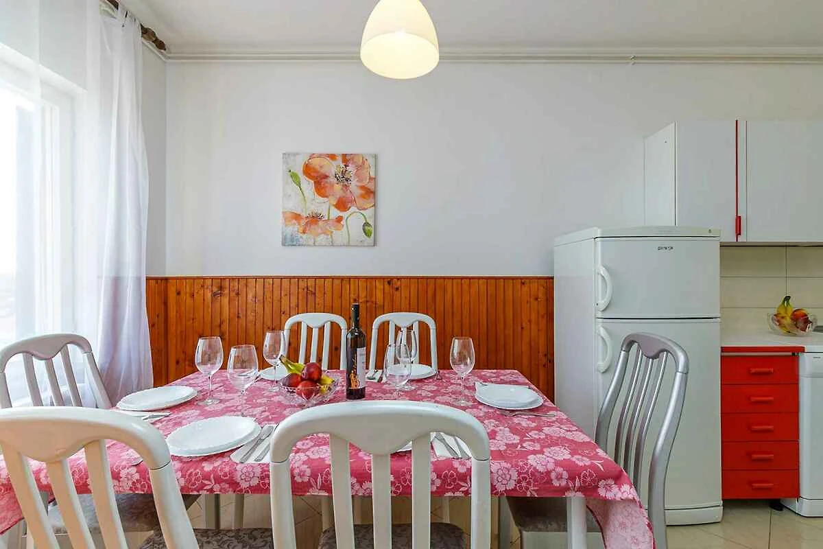 Die Ferienwohnung befindet sich in einem Apartementhaus und ist modern eingerichtet. Das Grundstück liegt in einem Wohngebiet, am Ortsrand. Auch wegen des Ausblicks vom Grundstück auf das Meer und der ruhigen und sonnigen Lage ist das Domizil beliebt. Zur gemeinsamen Nutzung stehen zur Verfügung: Liegewiese, Sonnenschirm, Sonnenliege, Kinderspielplatz, Gartendusche, Grillmöglichkeit, Terrasse, Pavillon und Gartenmöbel.