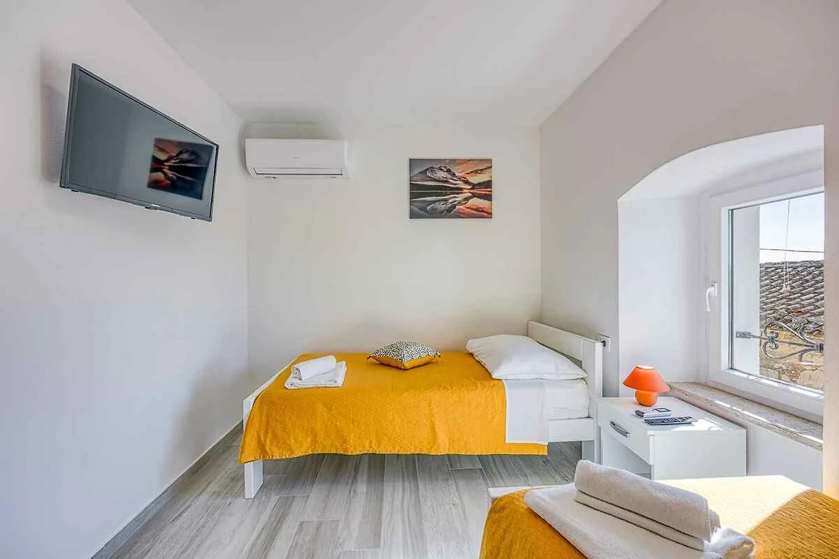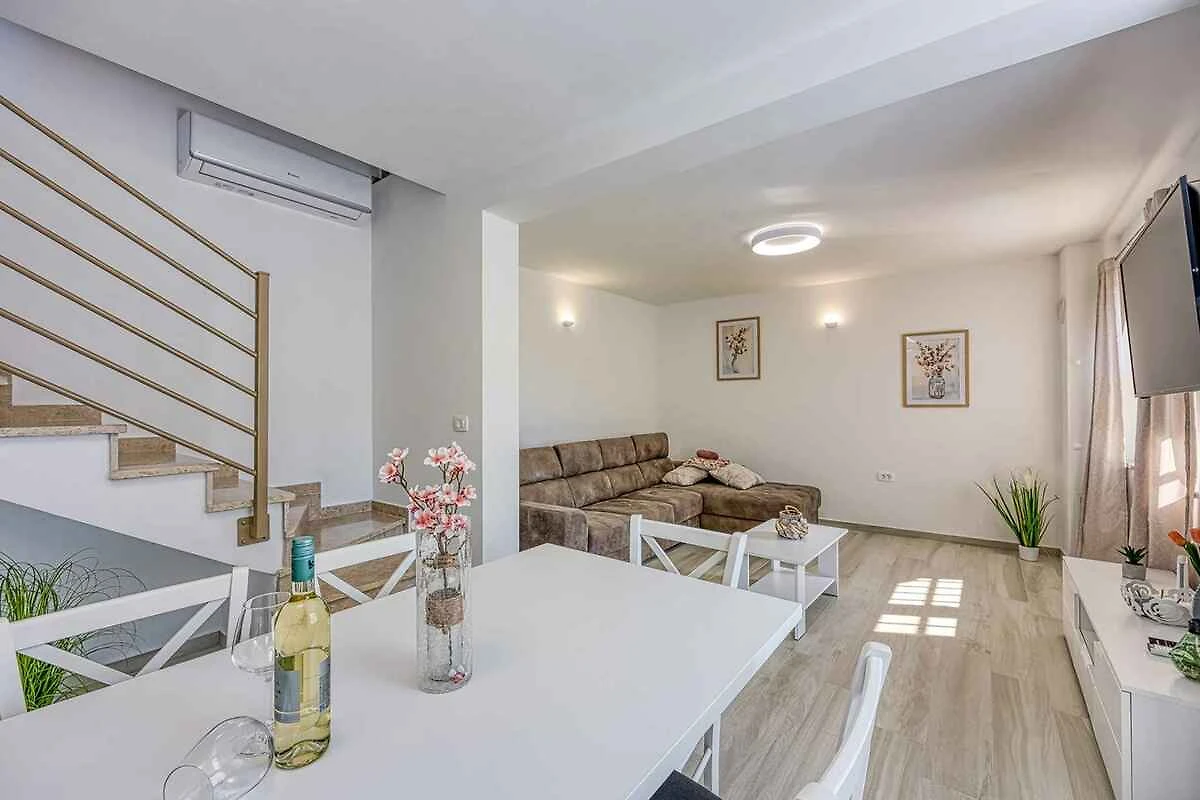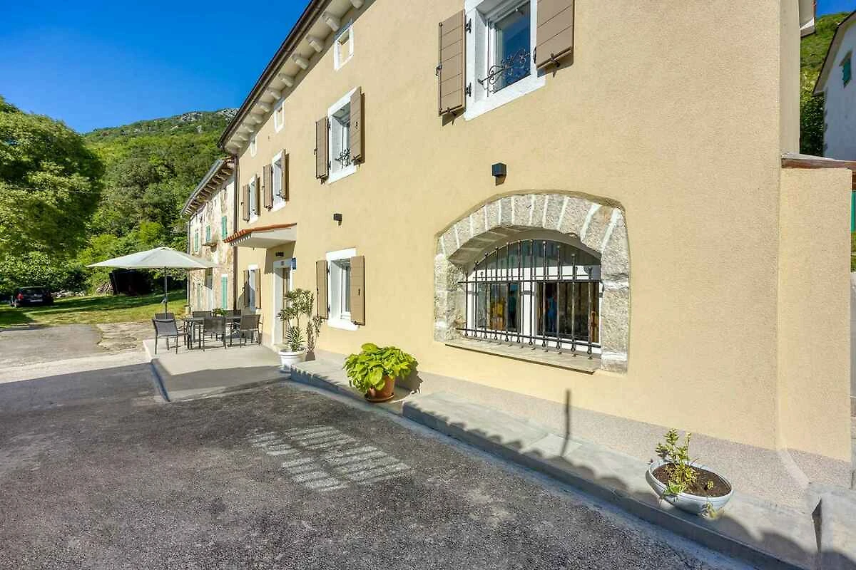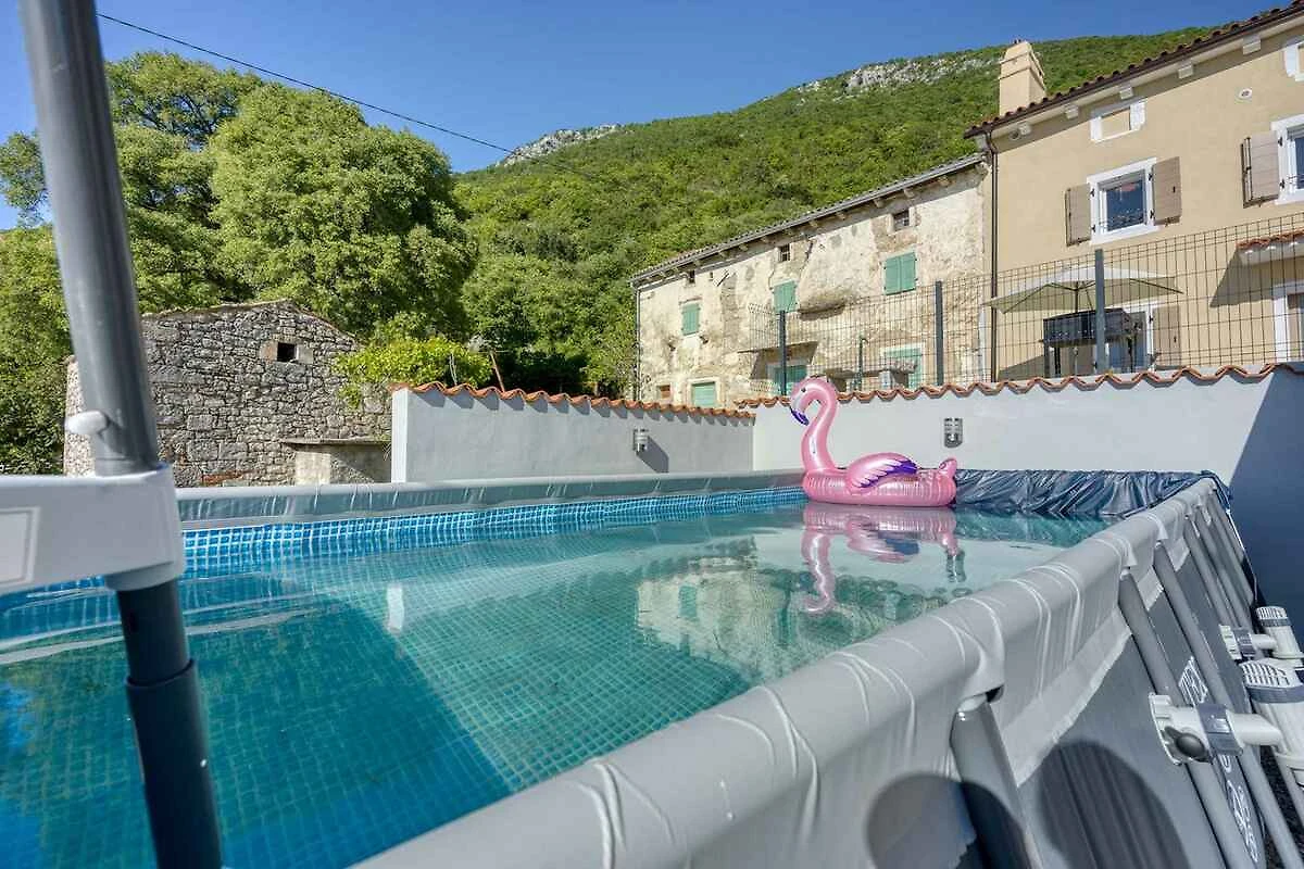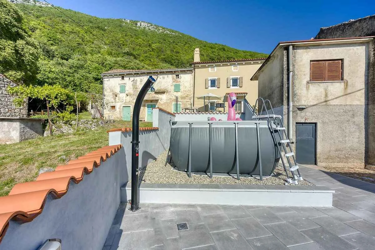 Kožljak. Das Ferienhaus befindet sich auf einem Gartengrundstück. Parkplatz (für 3 Pkws) auf der Strasse vor dem Haus.