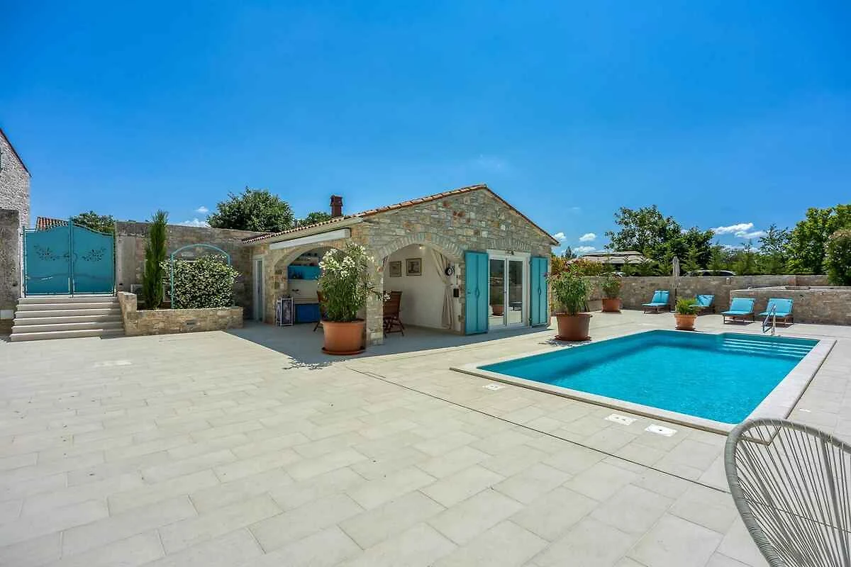 Sveti Lovreč. Die Villa befindet sich auf einem geschlossenen Grundstück, von einer Mauer begrenzt. Die Zufahrt erfolgt über einen Weg (asphaltiert). Parkplatz (für 2 Pkws) auf dem Grundstück.