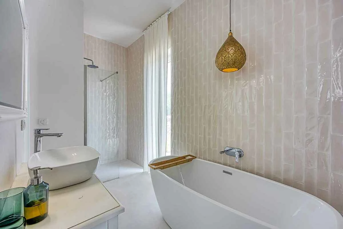 Die Villa ist modern und luxuriös eingerichtet. Auch wegen des Ausblicks vom Grundstück auf das Panorama ist das Domizil beliebt. Zur Nutzung stehen zur Verfügung: Sonnenschirm, Gartendusche, Grillmöglichkeit, Terrasse und Gartenmöbel.