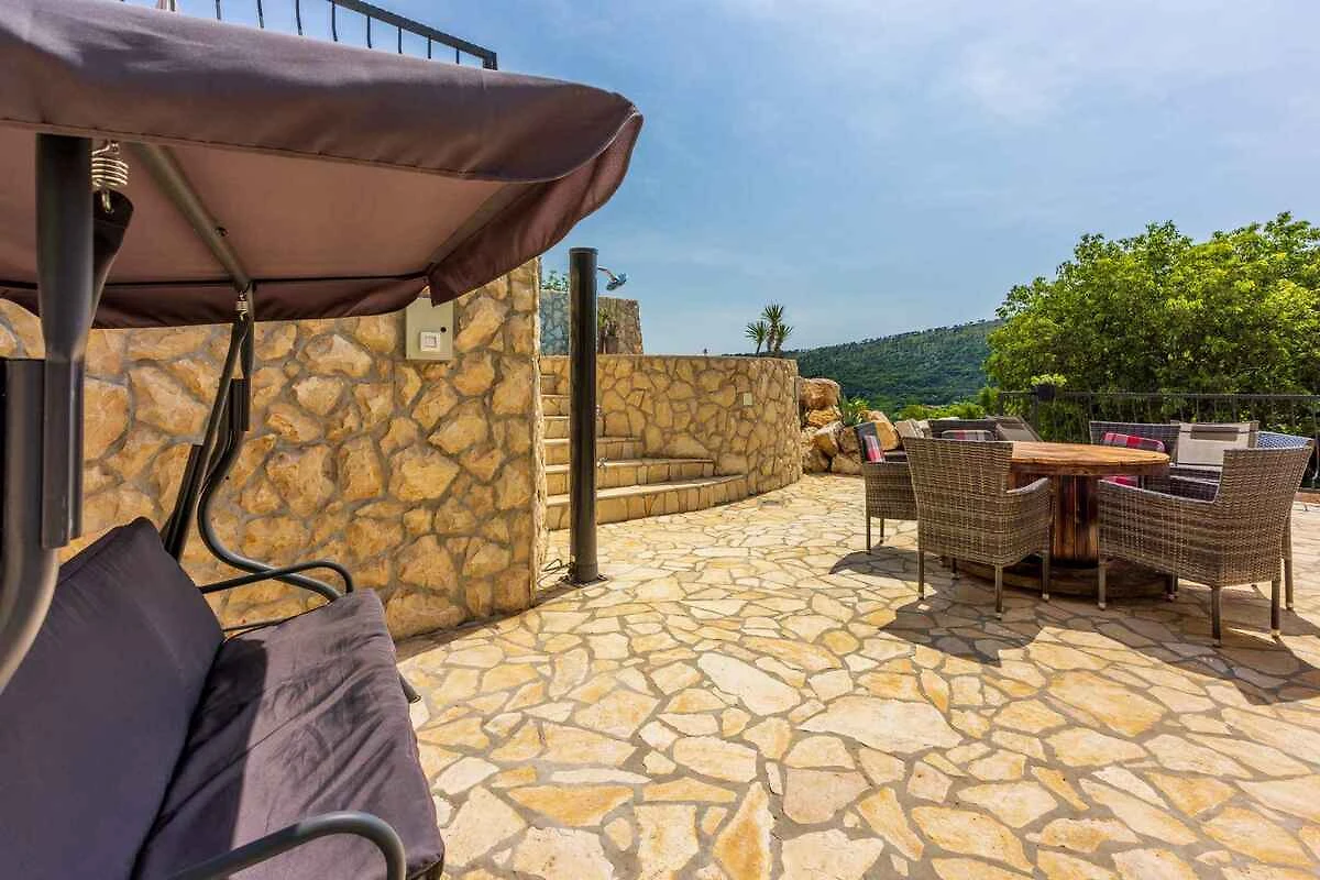 Bribir. Das Ferienhaus befindet sich auf einem geschlossenen Gartengrundstück, von einem Zaun und einer Mauer begrenzt. Pflaster. Die Zufahrt erfolgt über eine Nebenstrasse (asphaltiert). Parkplatz auf dem Grundstück.