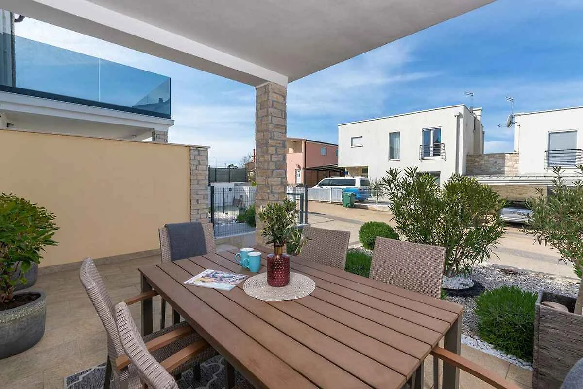 Novigrad. Das Ferienhaus befindet sich auf einem geschlossenen Gartengrundstück, von einem Zaun begrenzt. Die Zufahrt erfolgt über eine Nebenstrasse (asphaltiert). Parkplatz (für 1 Pkw) auf dem Grundstück.