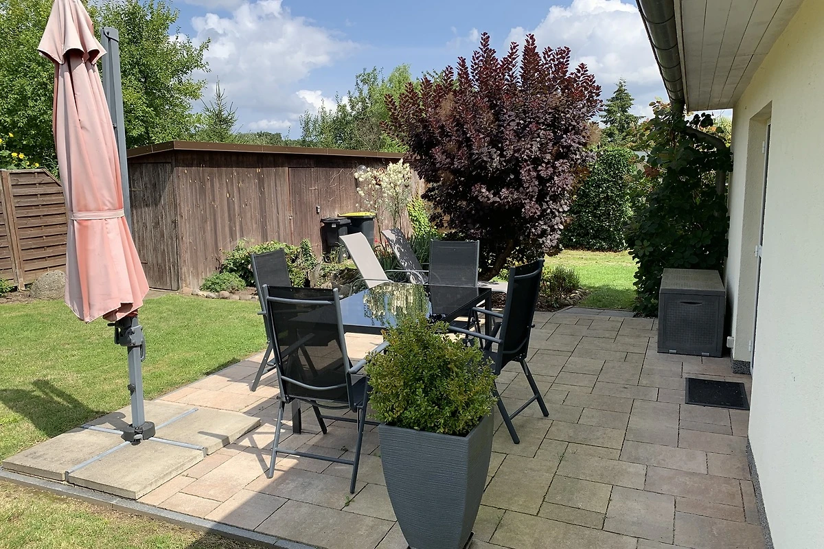 Die großzügige Terrasse mit Gartenmöbeln und Grill ist ideal für entspannte Stunden im Freien. Ein eigener Parkplatz direkt am Haus macht die Anreise besonders angenehm. Für Ihre Fahrräder besteht eine abschließbare Unterstellmöglichkeit.