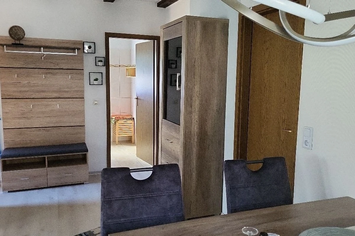 Herzlich willkommen im Ferienhaus Ferienglück 37 in Thalfang! Auf ca. 70 m² Wohnfläche bietet dieses gemütliche Ferienhaus Platz für bis zu 4 Personen ideal für Familien, Paare oder Freunde, die Komfort und Natur verbinden möchten.Das Haus besticht durch ein grosszügiges Wohn- und Esszimmer mit offenem Kamin, Satelliten-TV, Radio und kostenfreiem WLAN. Zwei liebevoll eingerichtete Schlafzimmer garantieren erholsamen Schlaf. Die voll ausgestattete Küche verfügt über Kühlschrank, Geschirrspüler und Kaffeemaschine perfekt, um gemeinsam zu kochen.Ihr persönliches Wellness-Highlight: die eigene Sauna. Das Badezimmer bietet eine barrierefreie Dusche und WC, der ebenerdige, stufenlose Eingang sorgt für besonderen Komfort.Eine überdachte Terrasse mit Grillplatz lädt zum Verweilen ein geniessen Sie hier gemütliche Abende im Freien. Waschmaschine und Trockner stehen ebenfalls zur Verfügung.Dank Gaszentralheizung wird es auch an kühlen Tagen angenehm warm.
