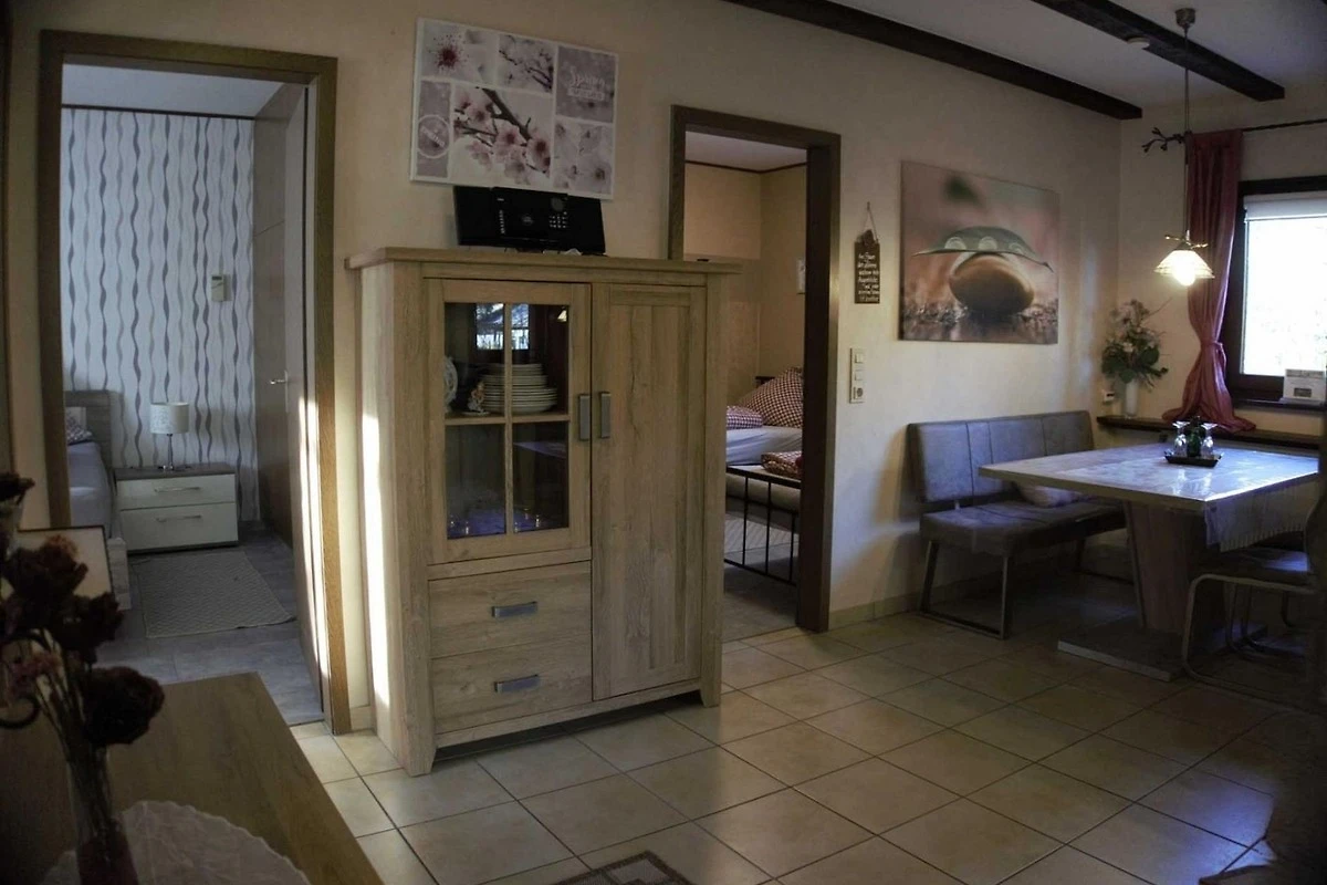 Herzlich willkommen in der Ferienwohnung Waldfrieden 41.1 (OG). Diese ca. 65 m² grosse 4-Sterne-Ferienwohnung bietet Platz für bis zu 4 Personen und vereint Gemütlichkeit mit exklusiver Ausstattung.Im hellen Wohn- und Esszimmer mit offenem Kamin können Sie den Tag entspannt ausklingen lassen. Satelliten-TV, Radio und WLAN sorgen für Unterhaltung.Zwei geschmackvoll eingerichtete Schlafzimmer schaffen eine erholsame Atmosphäre. Die moderne Küche ist ausgestattet mit Geschirrspüler, Kühlschrank und Kaffeemaschine perfekt für gemeinsame Mahlzeiten.Das Bad verfügt über eine barrierefreie Dusche und WC. Für Ihr Wohlbefinden steht Ihnen zusätzlich eine eigene Sauna zur Verfügung ideal, um nach aktiven Urlaubstagen zu entspannen.Zur Wohnung gehört eine überdachte Terrasse mit Grillplatz, auf der Sie den Abend gemütlich ausklingen lassen können. Dank der Gaszentralheizung geniessen Sie das ganze Jahr über behagliche Wärme.