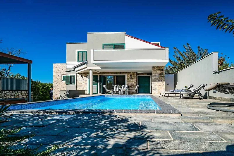Die einzeln stehende Villa ist modern eingerichtet. Auch wegen der ruhigen und sonnigen Lage ist das Domizil beliebt. Zur alleinigen Nutzung stehen zur Verfügung: Sonnenschirm, Sonnenliege, Gartendusche, Grillmöglichkeit, Terrasse und Gartenmöbel.