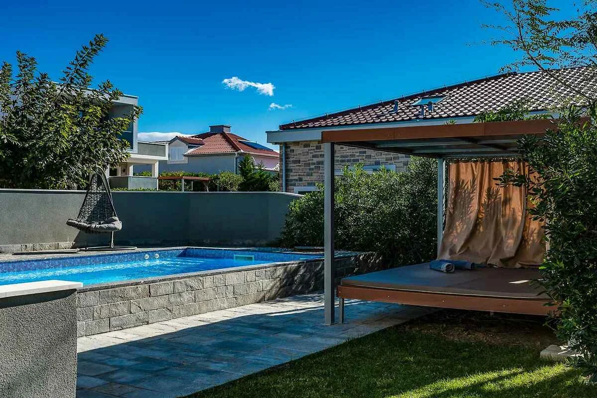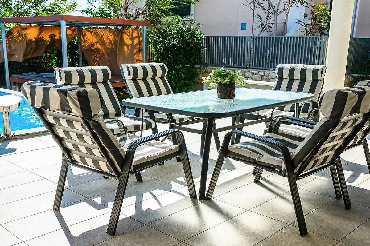 Novalja. Die Villa befindet sich auf einem 480 qm grossen, geschlossenen Gartengrundstück, von einem Zaun begrenzt. Der Vermieter wohnt nicht im Haus oder auf dem Grundstück. Die Zufahrt erfolgt über eine Nebenstrasse (asphaltiert). Parkplatz (für 2 Pkws) auf dem Grundstück.