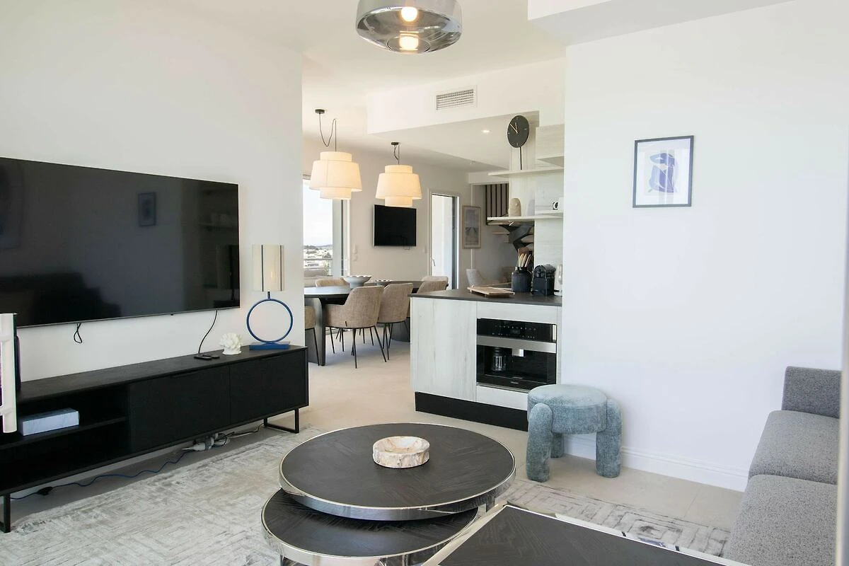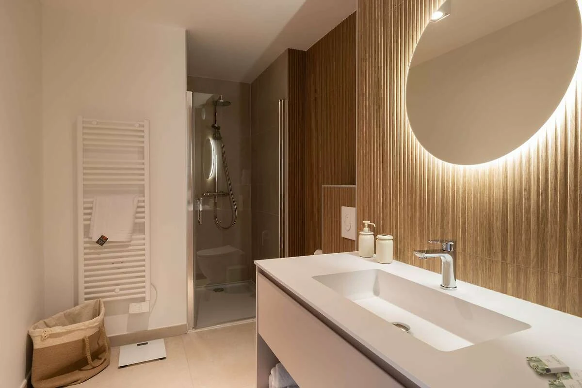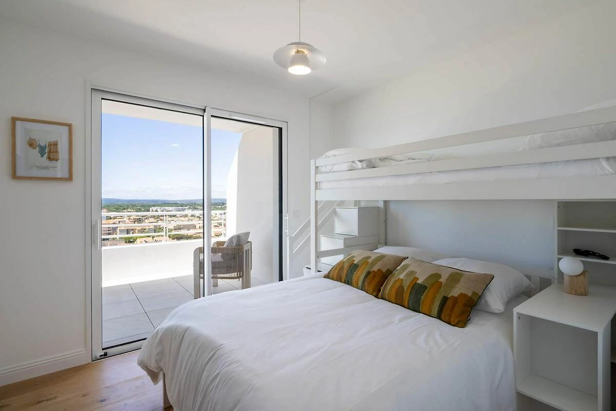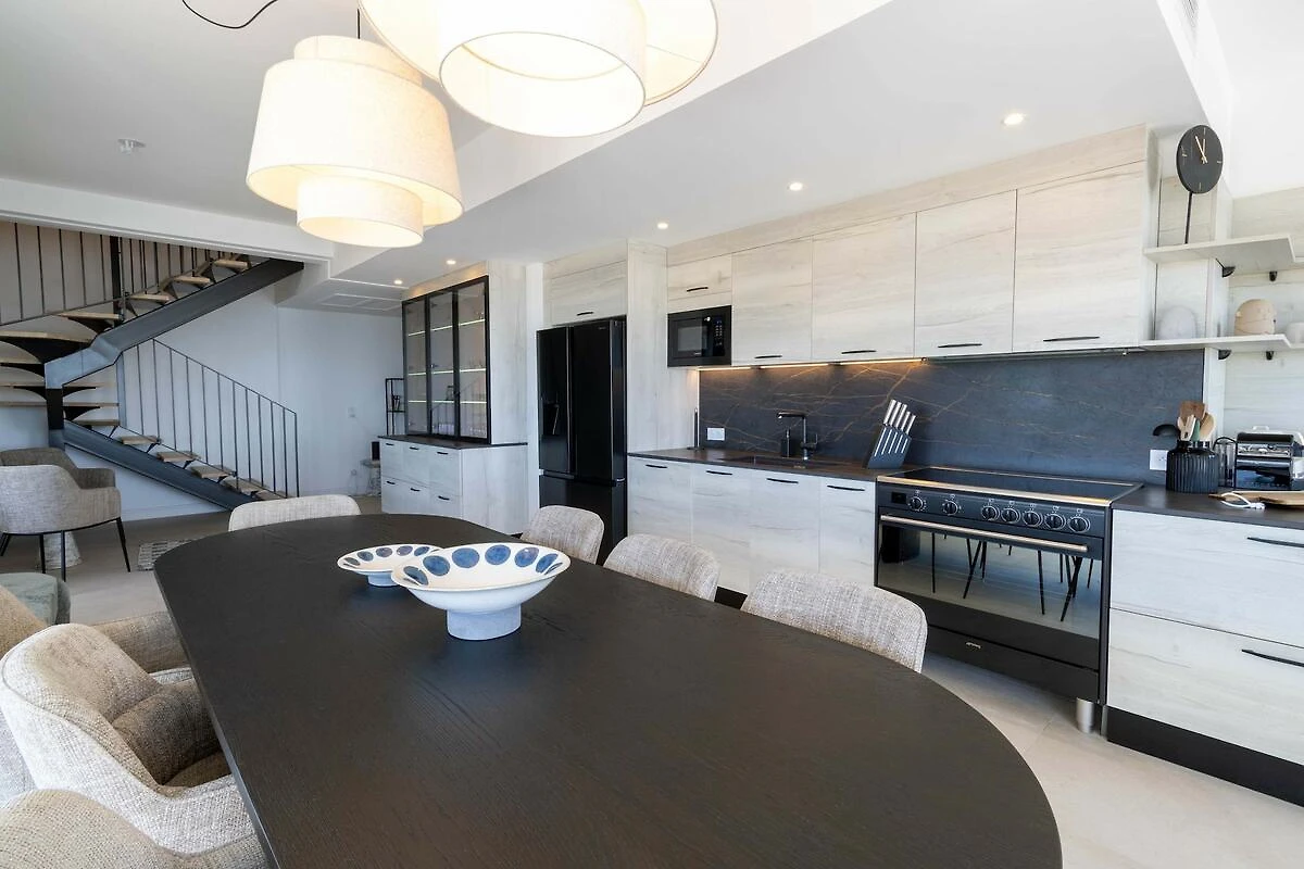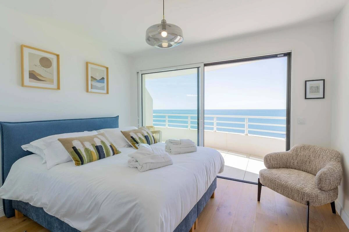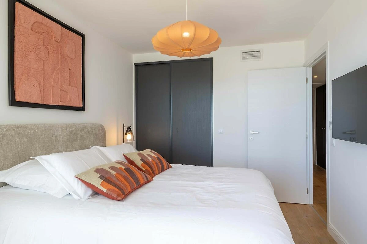 Das Duplex verfügt über drei Schlafzimmer, zwei moderne Badezimmer mit ebenerdigen Duschen und drei WCs. Die Hauptebene umfasst einen offenen Wohn- und Essbereich, eine voll ausgestattete Küche mit Smeg-Geräten sowie eine Terrasse mit Sonnenliegen, einem Loungebereich und einem Bluetooth-Spa. Im Obergeschoss haben alle Schlafzimmer einen Balkon mit Meerblick, während ein zweites Wohnzimmer mit einem 160 cm breiten Schlafsofa zusätzlichen Schlafplatz bietet. Freuen Sie sich auf erstklassige Annehmlichkeiten wie Waschmaschine, Trockner, Nespresso-Maschine, Raclette-Set, Brettspiele und hochwertige Hotelbettwäsche.