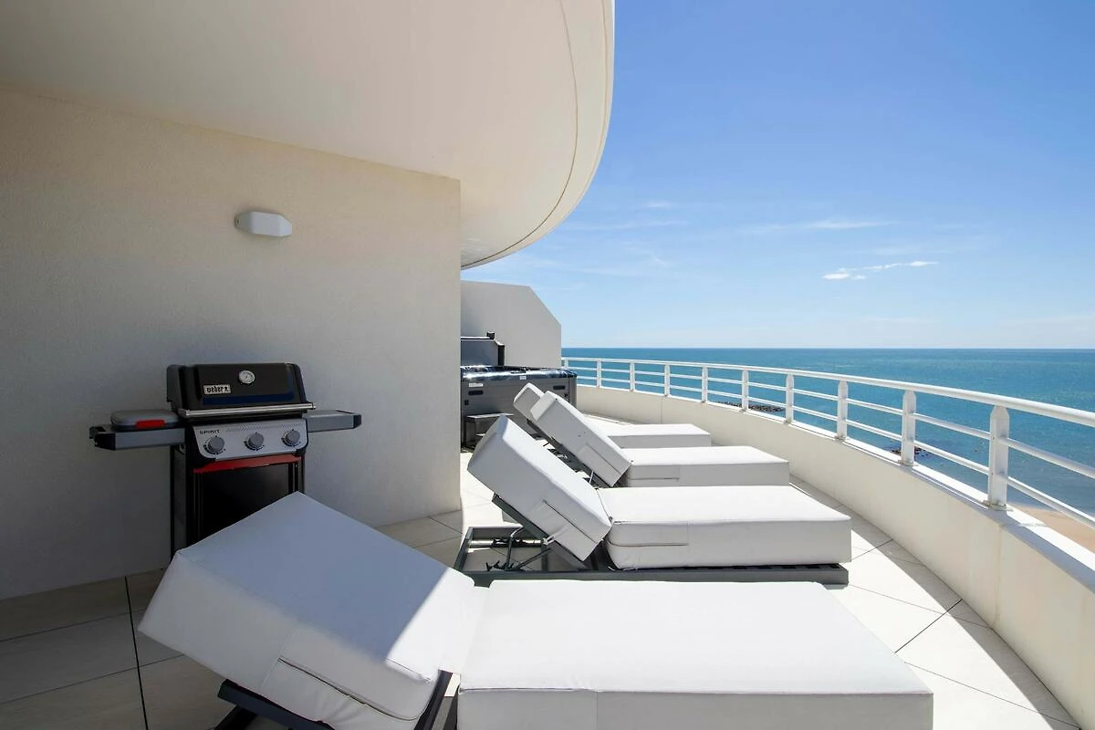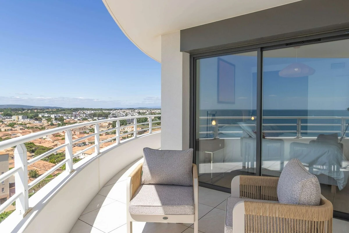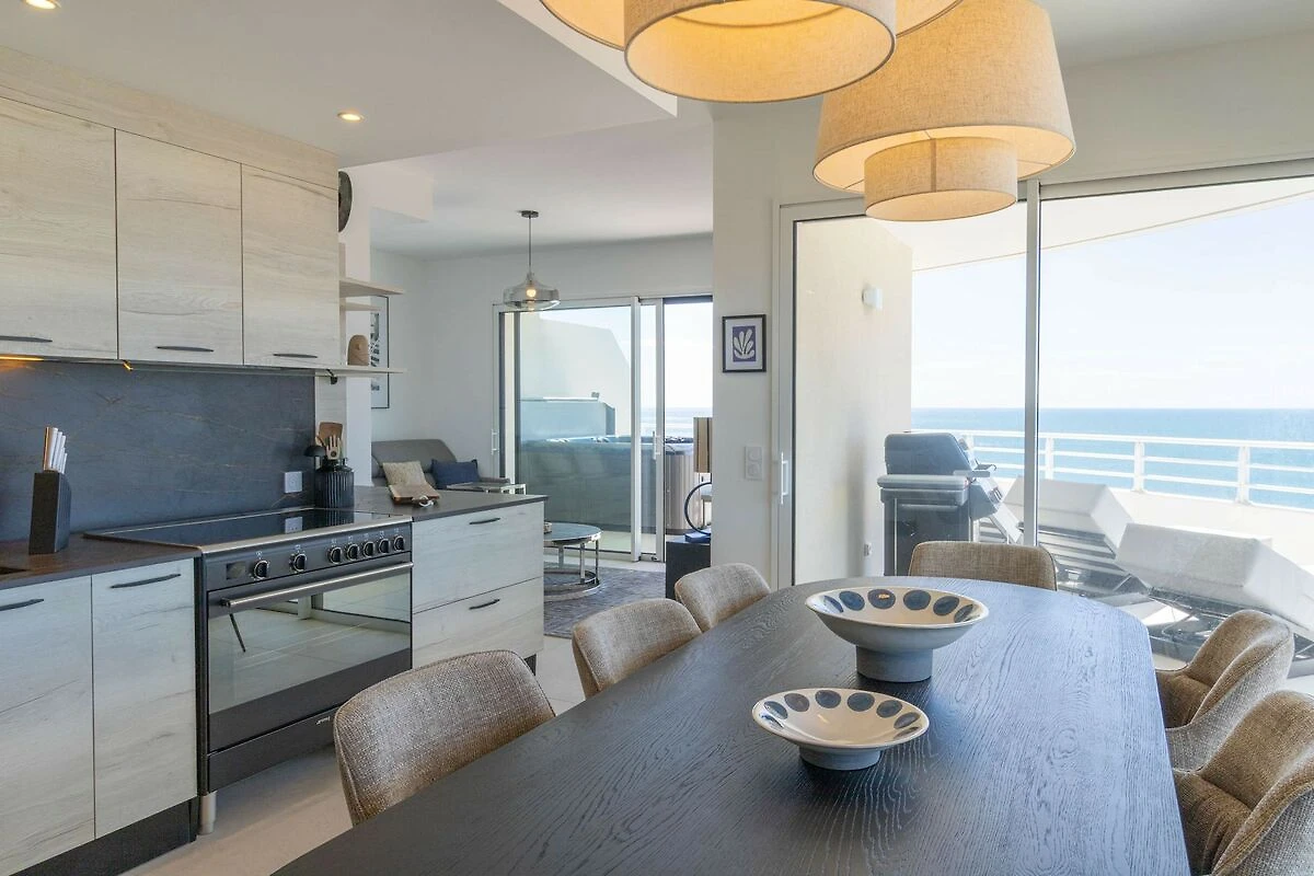 Willkommen im Panarea Prestige Duplex, einem atemberaubenden 4-Sterne-Hotel im 9. und 10. Stock der Strandresidenz Archipel Panarea in Valras-Plage. Nur 50 Meter vom Meer und dem pulsierenden Casino-Viertel entfernt bietet dieses geräumige Duplex einen Panoramablick auf das Mittelmeer und die Pyrenäen. Mit einem privaten Spa für 6 Personen auf der Terrasse, Glasfaser-WLAN, Klimaanlage und Designer-Interieur ist es der perfekte Rückzugsort für Familien und Gruppen mit bis zu 9 Gästen.