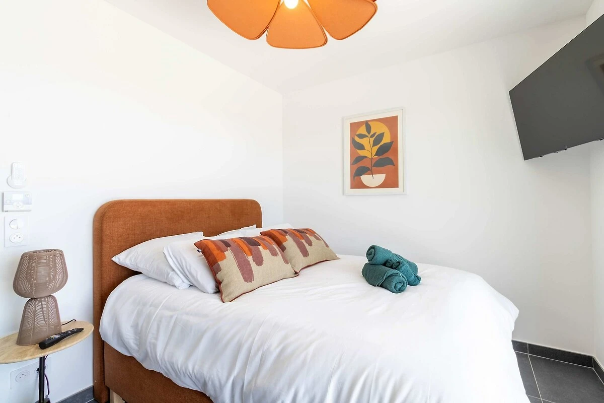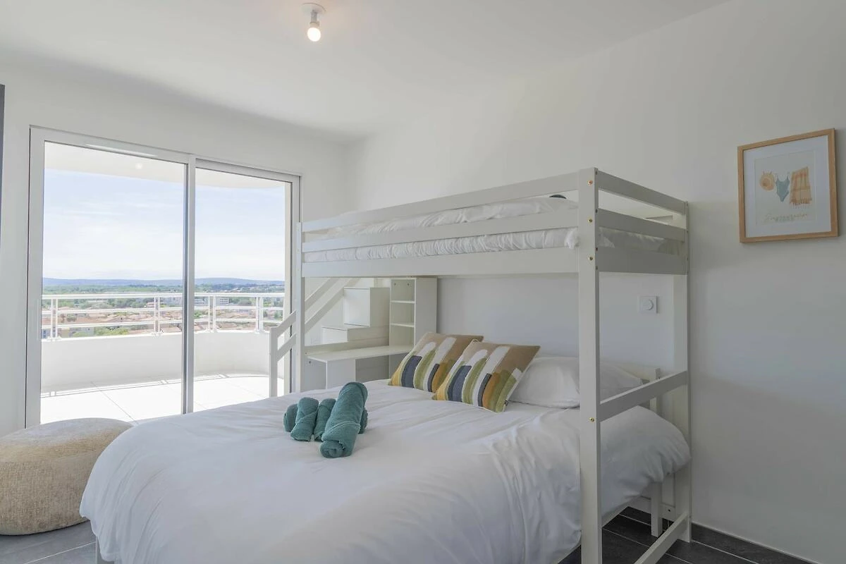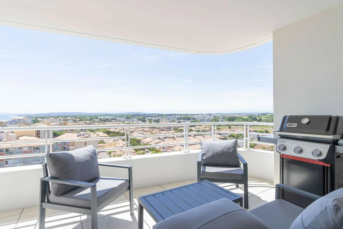 Genießen Sie erstklassigen Komfort in dieser stilvollen Maisonette-Wohnung mit 2 Schlafzimmern im obersten Stockwerk der Archipel Panarea Residence in Valras-Plage. Mit Panoramablick auf das Meer und die Pyrenäen, einer großzügigen Terrasse und einem privaten Parkplatz ist dieses 3-Sterne-Ferienhaus ideal für erholsame Strandurlaube mit Familie oder Freunden. Die Residenz ist ruhig und sicher, nur wenige Schritte vom Strand, Geschäften und Restaurants entfernt.