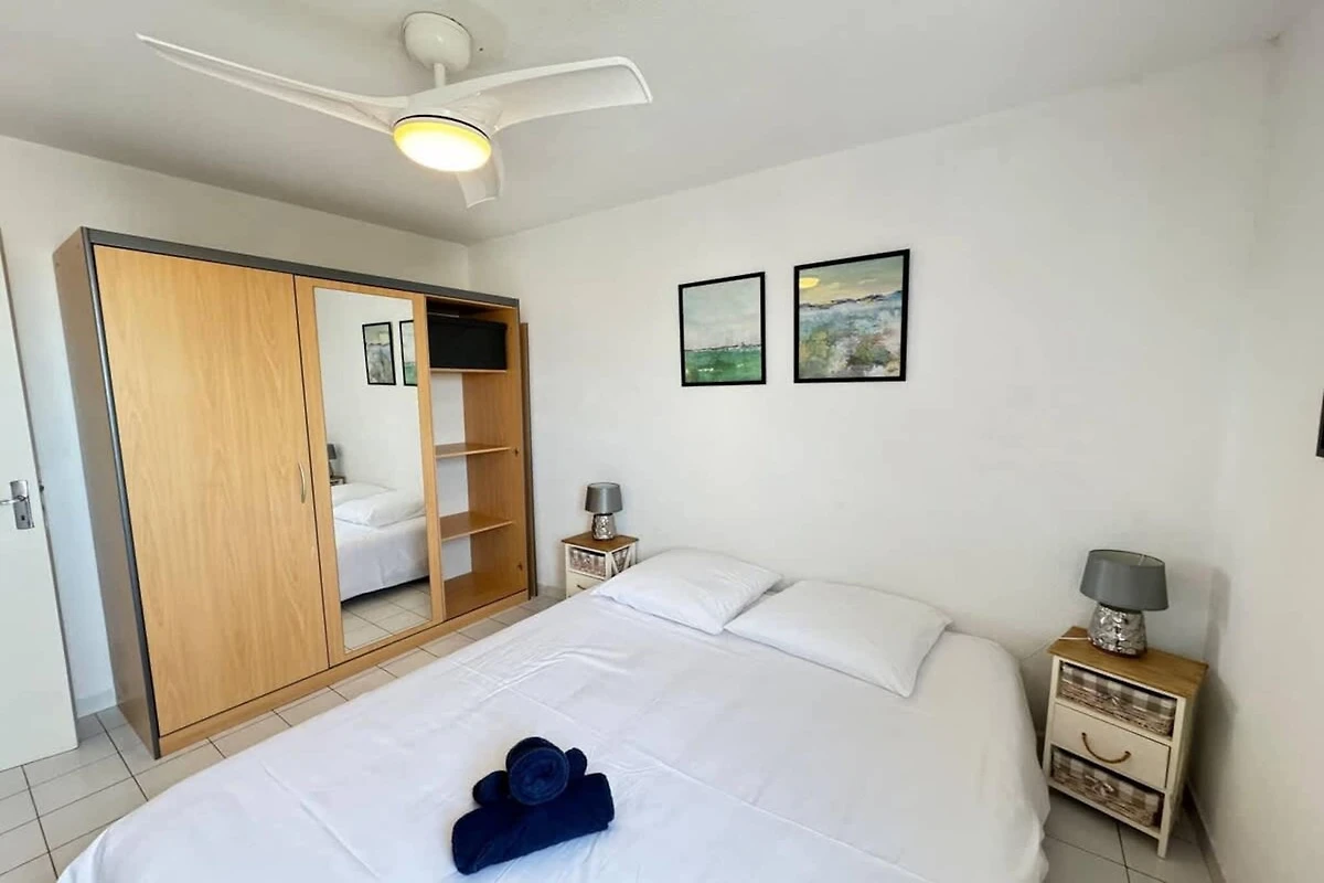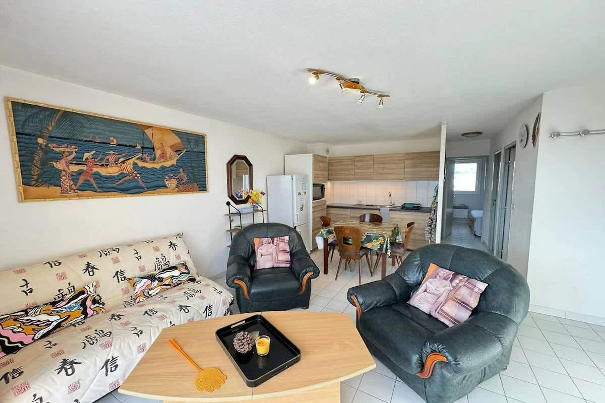 Genießen Sie einen erholsamen Aufenthalt in diesem komfortablen, 55 m² großen Apartment in idealer Lage, nur 300 Meter von den Sandstränden von Valras-Plage entfernt. Das Apartment eignet sich perfekt für Familien oder Freunde und verfügt über zwei Doppelzimmer, einen Balkon mit freiem Blick auf das örtliche Stadion und einen sicheren Privatparkplatz.