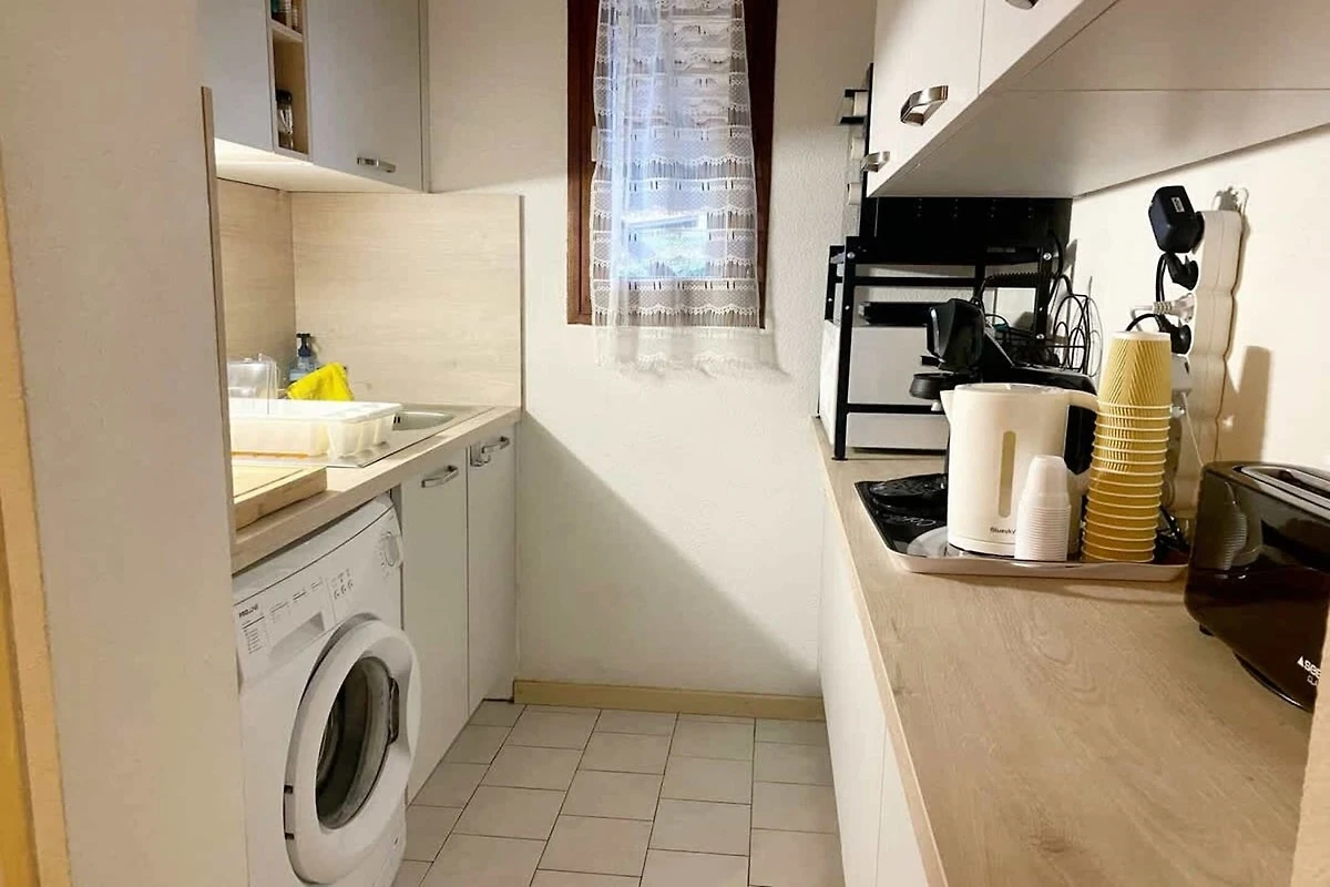 Das Haus bietet Platz für bis zu sechs Gäste und verfügt über ein Schlafzimmer mit Doppelbett, ein Schlafsofa mit Etagenbetten und ein ausziehbares Sofa im Wohnzimmer. Die gut ausgestattete Küchenzeile umfasst einen Kühlschrank, eine Mikrowelle, einen Backofen, einen Gefrierschrank und eine Waschmaschine. Ein Badezimmer mit Dusche und separatem WC rundet das Angebot ab. Bettwäsche und Handtücher sind nicht im Preis inbegriffen, können aber nach vorheriger Ankündigung gemietet werden.