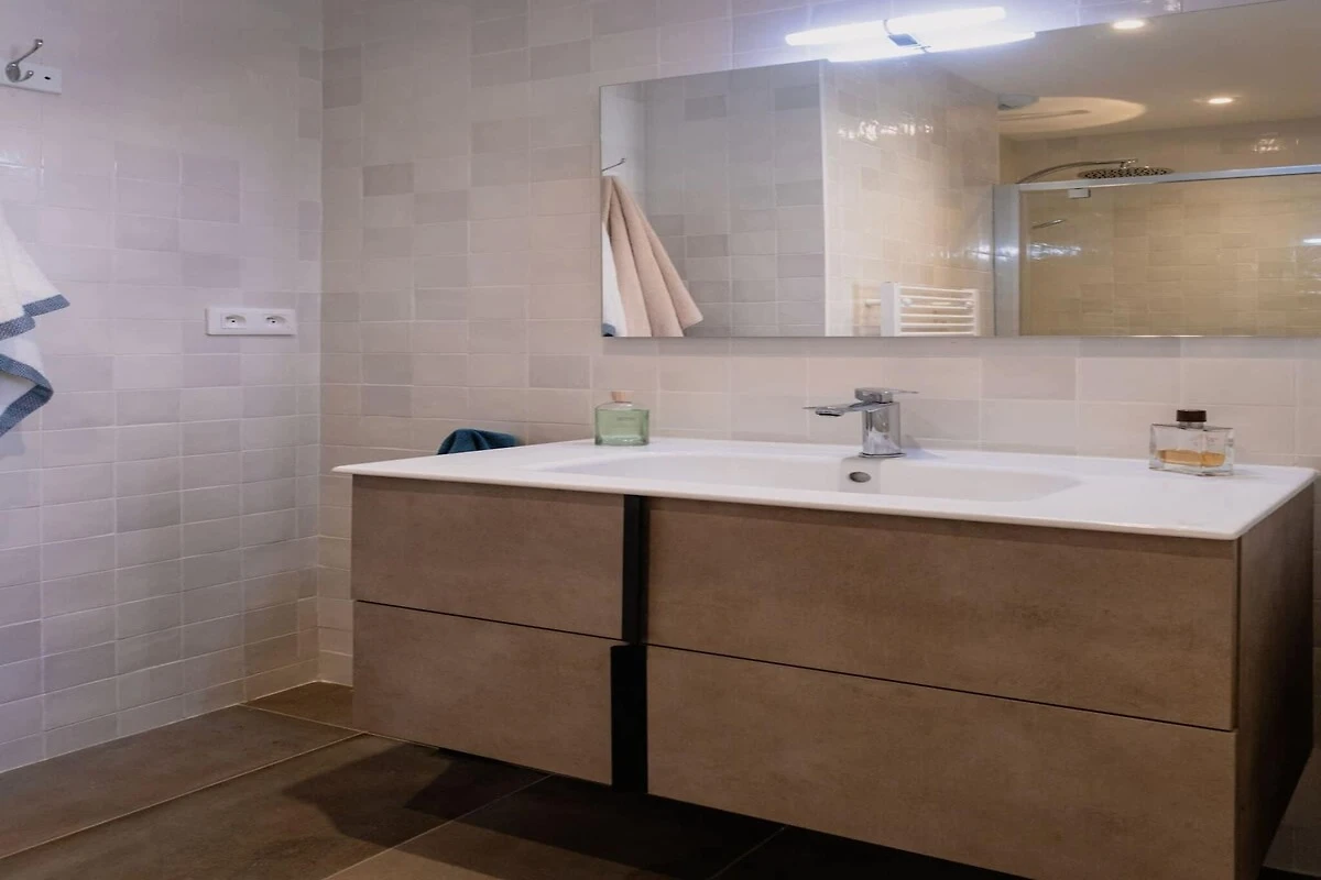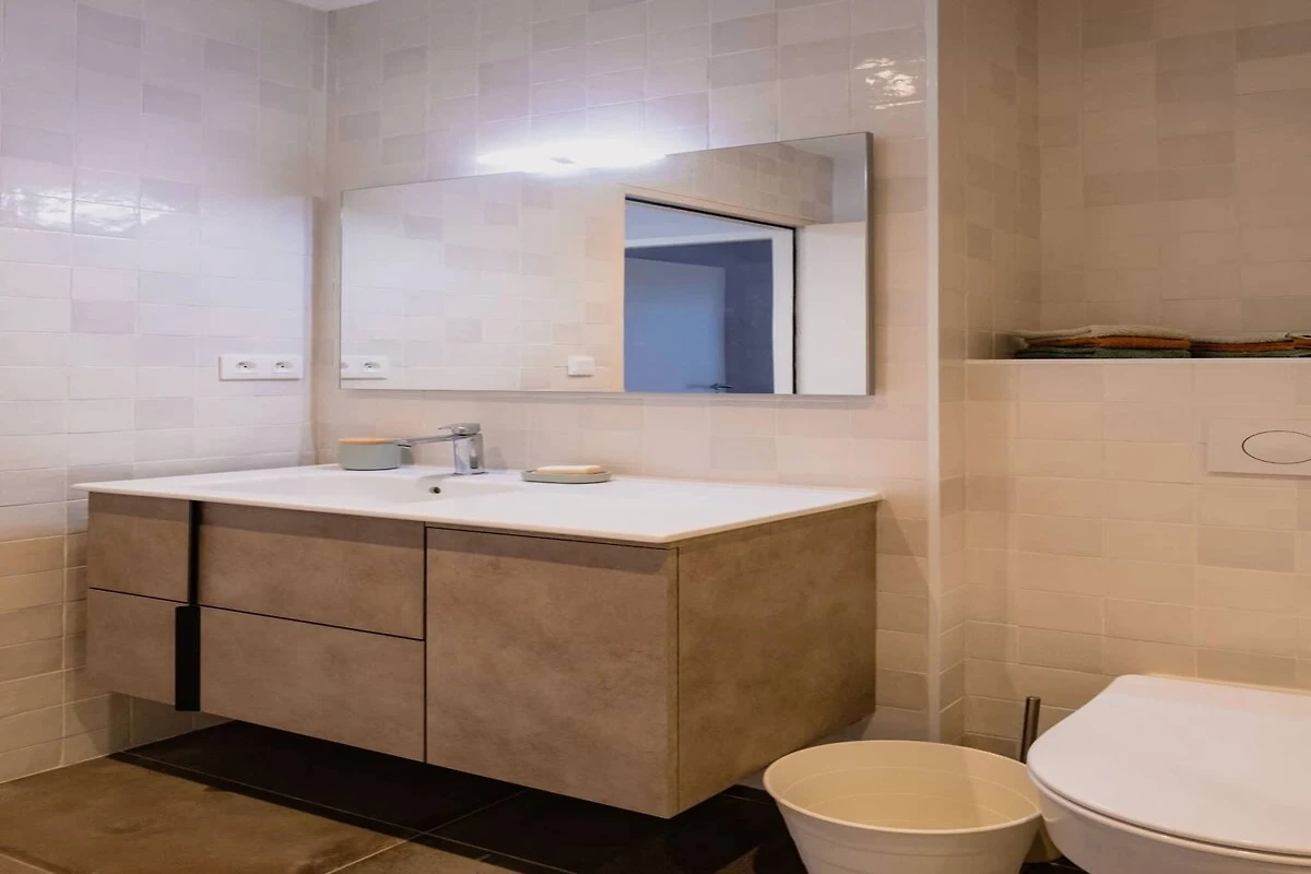 Das großzügige Wohnzimmer verfügt über ein helles Wohnzimmer mit einem bequemen Sofa, einem großen Fernseher und Highspeed-WLAN. Die offene Küche ist komplett ausgestattet mit Backofen, Mikrowelle, Induktionskochfeld, Geschirrspüler, Kühlschrank, Gefrierschrank sowie Nespresso- und Filterkaffeemaschine. Der Schlafbereich besteht aus einer Master-Suite mit eigenem Bad, drei weiteren komfortablen Doppelzimmern und einem zweiten Badezimmer. Bettwäsche, Handtücher, Bademäntel und bezogene Betten sind inklusive. Waschmaschine, Trockner und Bügeleisen/-brett sind ebenfalls vorhanden.