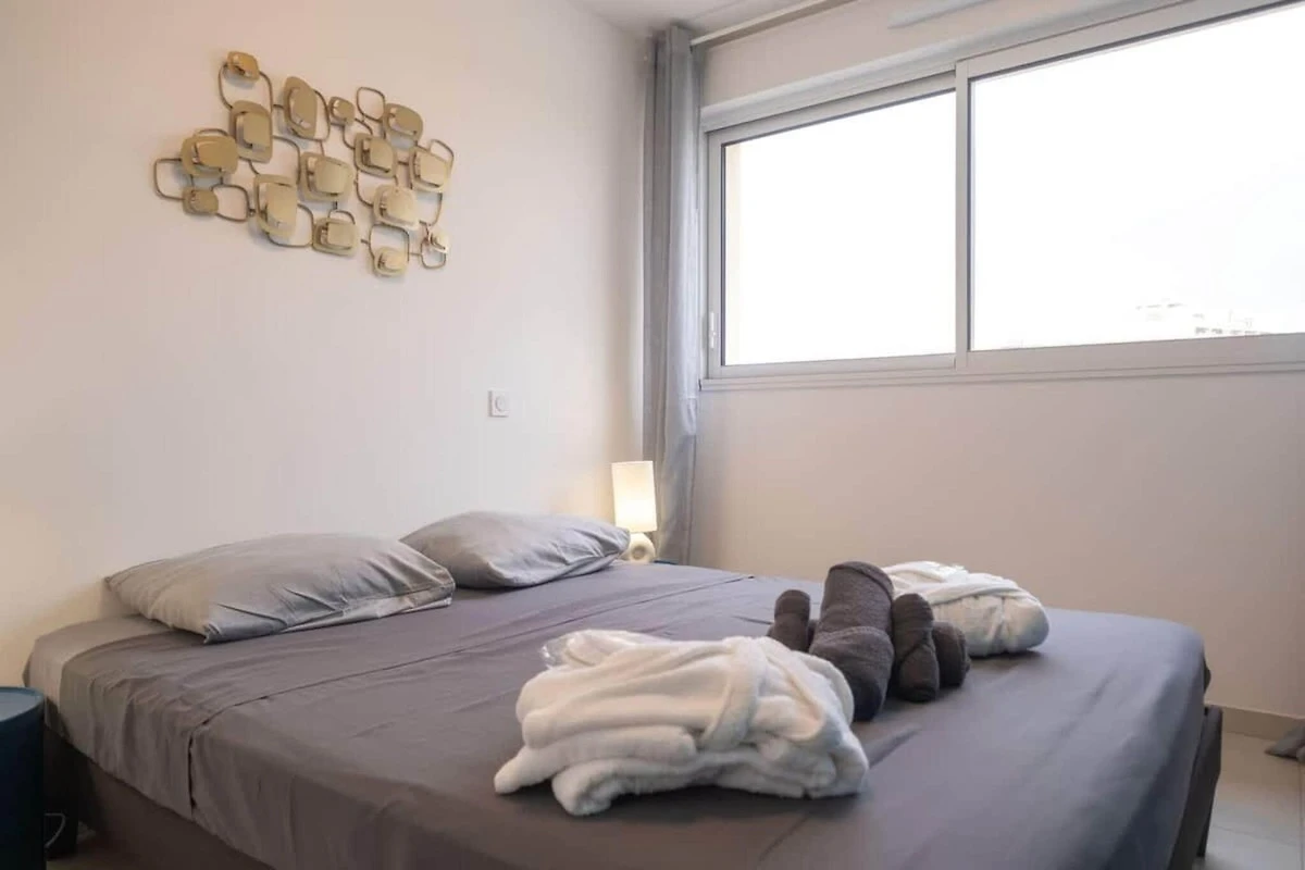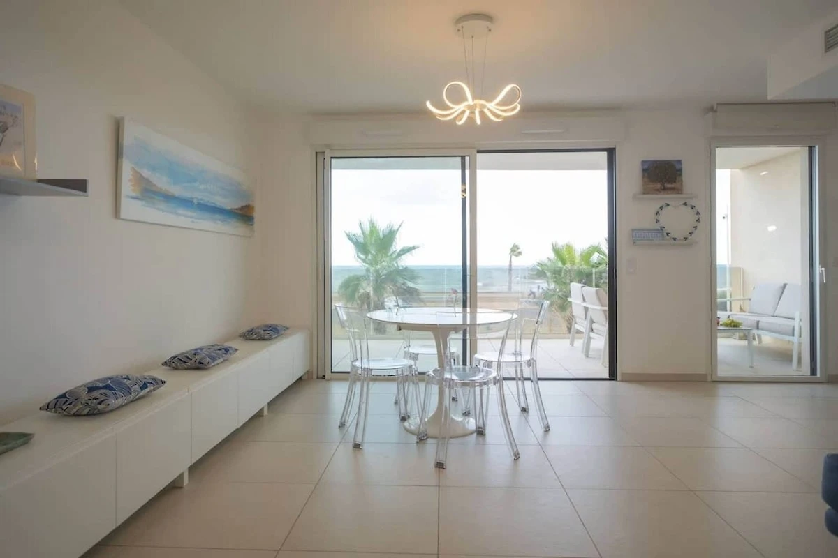 Willkommen in diesem modernen, 65 m² großen Apartment in Valras-Plage, nur 30 Meter vom Sandstrand entfernt. Genießen Sie vom privaten Balkon aus einen atemberaubenden Panoramablick auf das Meer – perfekt für entspannte Morgenstunden oder abendliche Sonnenuntergänge. Das Apartment ist voll klimatisiert und komfortabel eingerichtet – ideal für einen ruhigen Urlaub am Meer mit Familie oder Freunden.